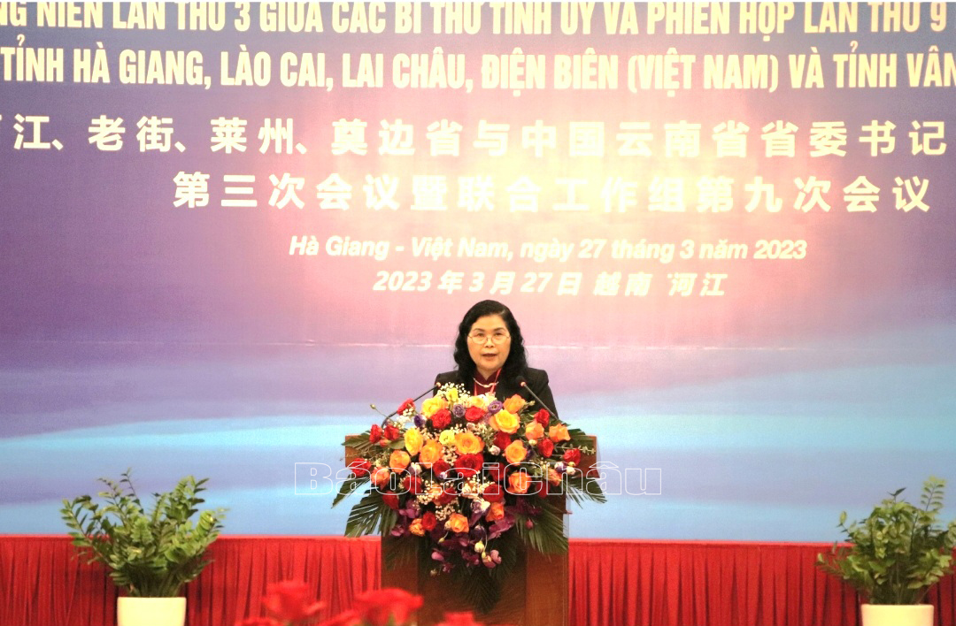 Phát biểu tại hội nghị, đồng chí Giàng Páo Mỷ - Bí thư Tỉnh ủy Lai Châu nhấn mạnh, thực hiện công tác phối hợp, sau Hội nghị năm 2022 đến nay, tỉnh Lai Châu đã phối hợp với tỉnh Vân Nam triển khai toàn diện những nội dung trao đổi, thống nhất tại Hội nghị lần thứ 8 nhóm công tác liên hợp giữa 5 tỉnh. Hai bên thường xuyên trao đổi công thư, công hàm, điện mừng, tổ chức các hội nghị trực tuyến, ký kết biên bản hợp tác. Đồng chí Bí thư Tỉnh ủy cũng đề nghị trong thời gian tới, hai bên tiếp tục duy trì quan hệ hữu nghị thông qua trao đổi công thư, công hàm, điện đàm, tổ chức các cuộc thăm hỏi và tiếp xúc giữa lãnh đạo các cấp, các ngành hai bên; sớm ký kết biên bản hợp tác hữu nghị giữa Tỉnh ủy Lai Châu với Tỉnh ủy Vân Nam; chỉ đạo các cấp, các ngành tích cực phối hợp, thúc đẩy hợp tác trong một số lĩnh vực trọng điểm (kinh tế thương mại, du lịch; hoàn thiện cơ sở hạ tầng, nâng cấp cửa khẩu; công tác quản lý biên giới); ủng hộ các ngành, địa phương hai bên tiếp tục duy trì các cơ chế hợp tác đã được thiết lập.