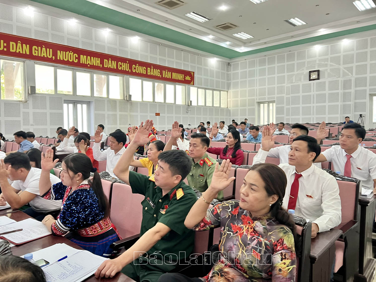Đại biểu HĐND huyện Mường Tè biểu quyết nghị quyết.