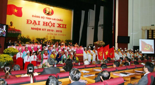(BLC) - Sáng 23/9 tại Trung tâm Hội nghị – Văn hoá tỉnh, Đại hội Đại biểu Đảng bộ tỉnh Lai Châu lần thứ XII, nhiệm kỳ 2010 - 2015 đã long trọng khai mạc. Đại hội Đại biểu tỉnh Lai Châu là 1 trong 10 Đảng bộ được Bộ Chính trị chọn làm điểm Đại hội bầu trực tiếp Bí thư Tỉnh uỷ.