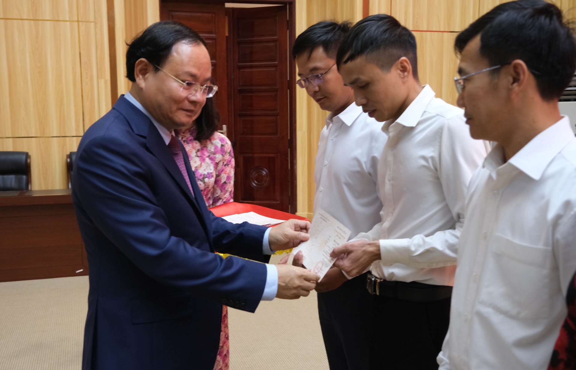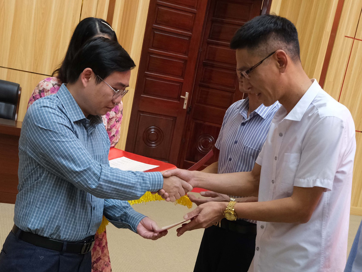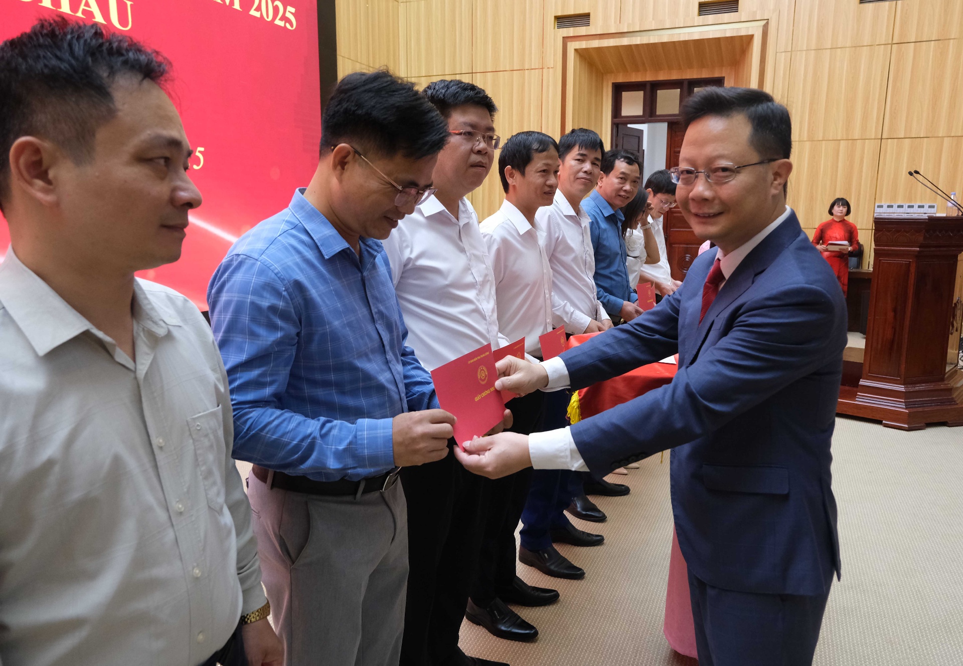 Đồng chí Nguyễn Ngọc Vinh - Ủy viên Ban Thường vụ Tỉnh ủy, Chủ nhiệm Ủy ban Kiểm tra Tỉnh ủy trao chứng nhận cho các học viên.