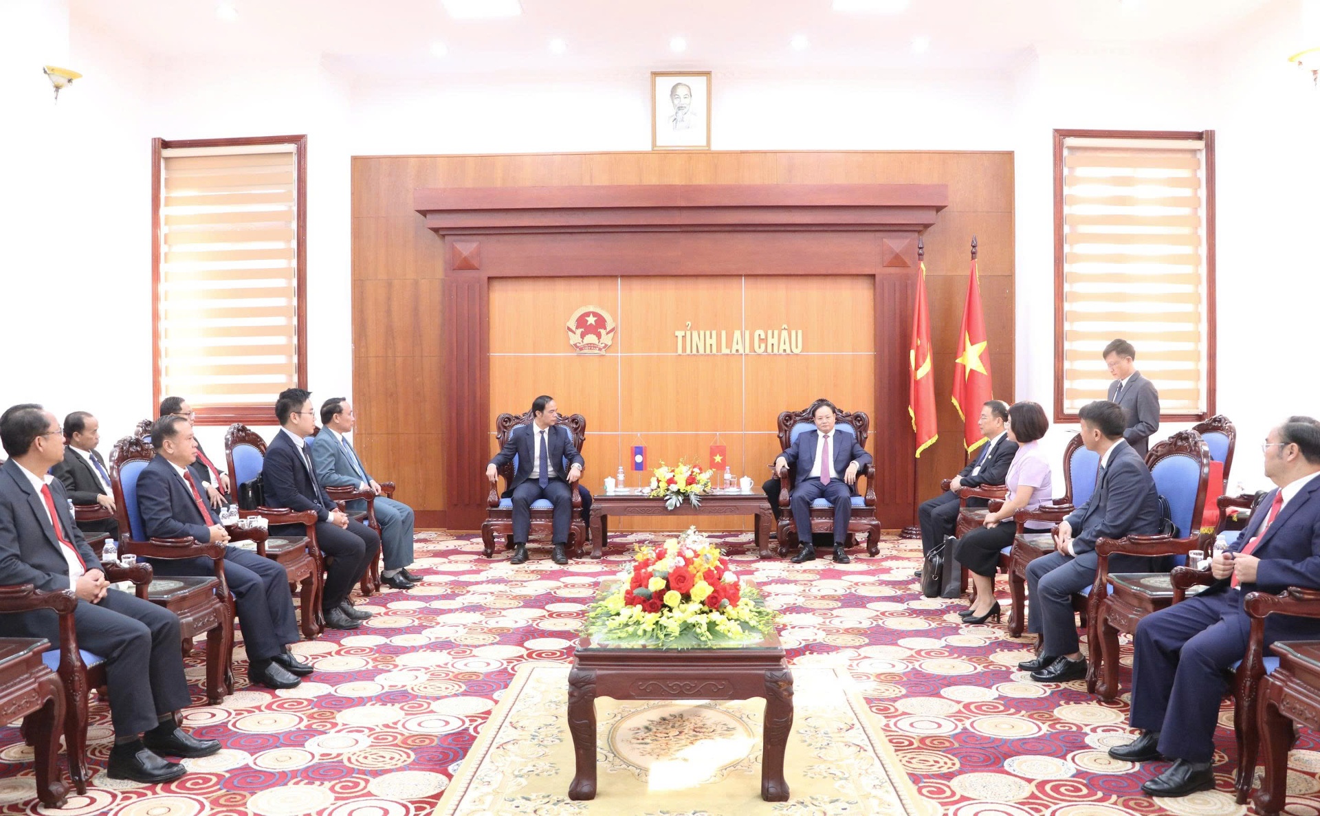 Tại buổi tiếp xã giao, đồng chí Lê Minh Ngân - Bí thư Tỉnh ủy Lai Châu bày tỏ vui mừng được đón tiếp Tiến sỹ Vông Sạ Văn Xay Nhạ Vông - Phó Bí thư Tỉnh ủy, Chủ tịch Ủy ban Chính quyền tỉnh U Đôm Xay và Đoàn Đại biểu đến thăm và làm việc tại tỉnh Lai Châu.