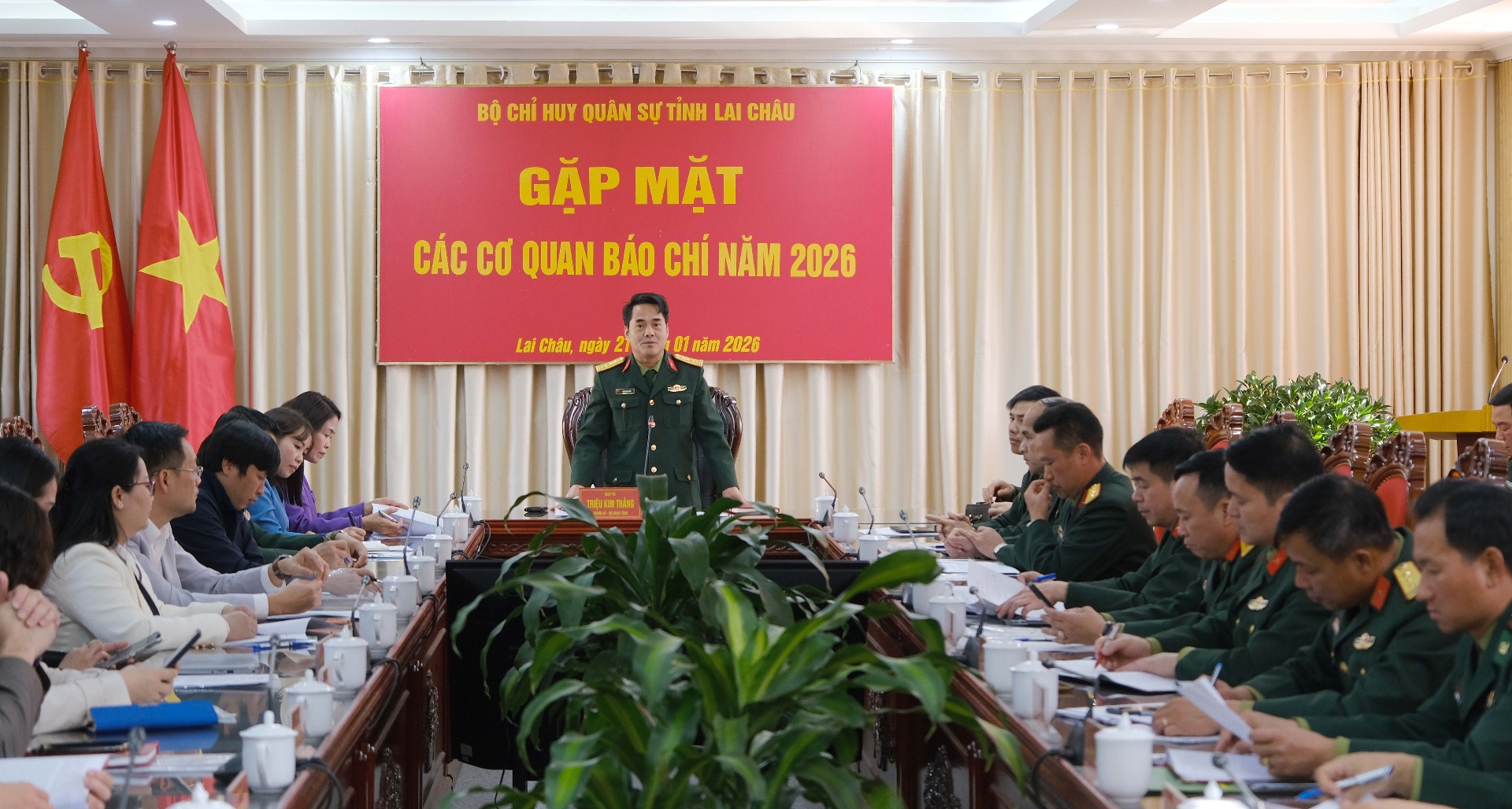 Cũng tại buổi gặp mặt, đồng chí Triệu Kim Thắng - Tỉnh ủy viên, Chính ủy Bộ Chỉ huy Quân sự tỉnh trân trọng cảm ơn sự quan tâm, đồng hành, phối hợp trách nhiệm của Ban Tuyên giáo và Dân vận Tỉnh ủy cùng các cơ quan thông tấn, báo chí Trung ương và địa phương đối với lực lượng vũ trang tỉnh trong thời gian qua. Đồng thời khẳng định, công tác tuyên truyền có vai trò đặc biệt quan trọng trong việc xây dựng nền quốc phòng toàn dân, củng cố thế trận quốc phòng gắn với thế trận an ninh nhân dân, nhất là trên địa bàn biên giới của tỉnh. Thời gian tới, Bộ Chỉ huy Quân sự tỉnh mong muốn tiếp tục nhận được sự phối hợp chặt chẽ, hiệu quả của các cơ quan báo chí trong tuyên truyền nhiệm vụ quân sự, quốc phòng, bảo vệ Tổ quốc trong tình hình mới...