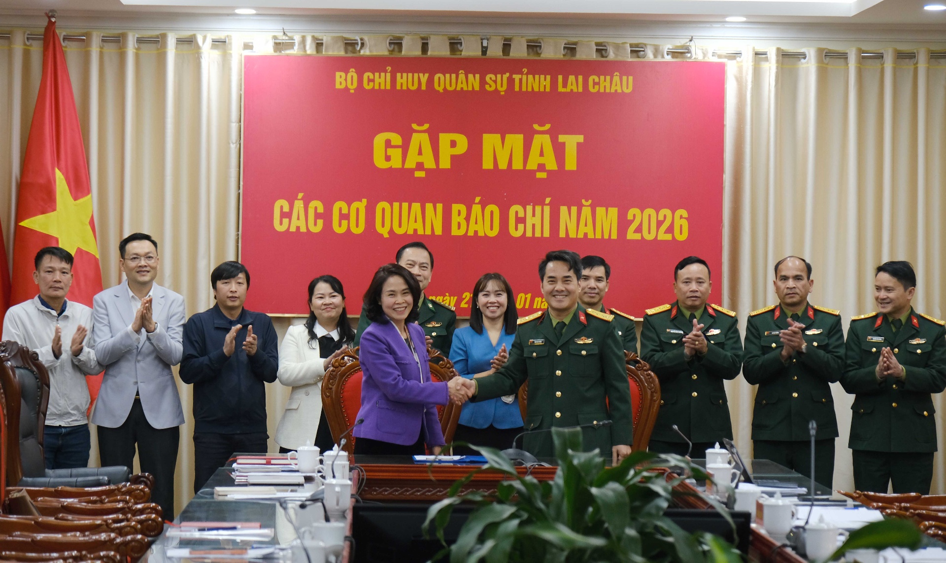 Phát biểu tại buổi gặp mặt, các đồng chí Đào Thị Thanh Nhàn - Phó Trưởng Ban Thường trực Ban Tuyên giáo và Dân vận Tỉnh ủy; Đào Bích Vân - Giám đốc Báo và Phát thanh, truyền hình Lai Châu đánh giá cao sự phối hợp chặt chẽ, hiệu quả giữa Bộ Chỉ huy Quân sự tỉnh với các cơ quan báo chí trong công tác tuyên truyền nhiệm vụ quân sự, quốc phòng thời gian qua. Đồng thời nhấn mạnh, trong bối cảnh tình hình mới, công tác tuyên truyền cần tiếp tục bám sát các chủ trương, đường lối của Đảng, chính sách, pháp luật của Nhà nước; tập trung làm rõ vai trò của lực lượng vũ trang trong xây dựng nền quốc phòng toàn dân, thế trận quốc phòng gắn với thế trận an ninh nhân dân, nhất là trên địa bàn biên giới. Qua đó, lan tỏa hình ảnh, hoạt động của lực lượng vũ trang tỉnh đến đông đảo cán bộ, đảng viên và nhân dân...