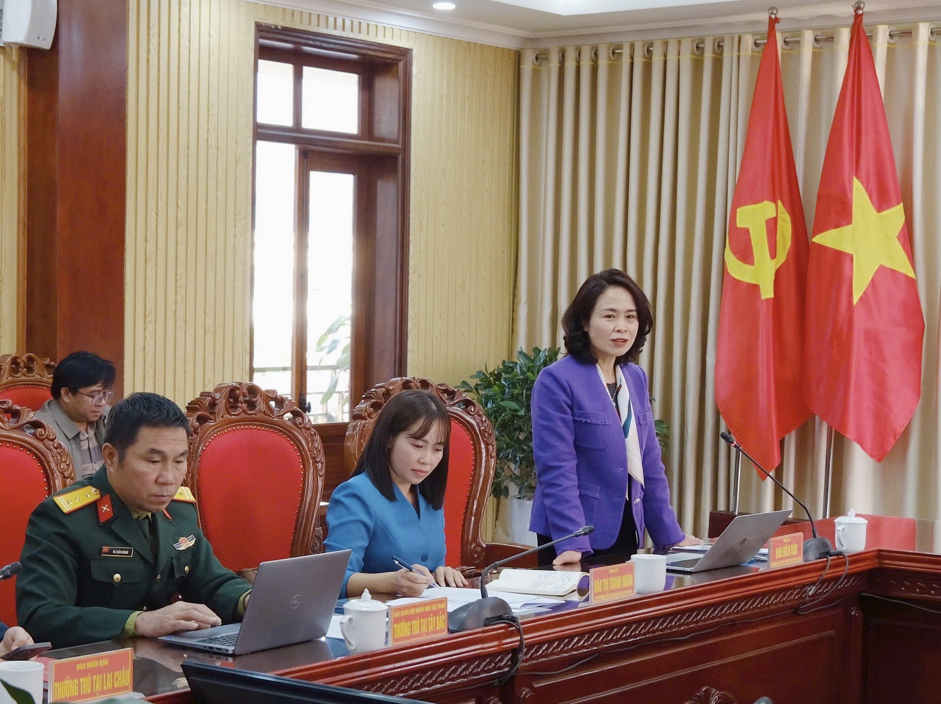 Tham dự buổi gặp mặt có các đồng chí: Đào Thị Thanh Nhàn - Phó Trưởng Ban Thường trực Ban Tuyên giáo và Dân vận Tỉnh ủy; Đào Bích Vân - Giám đốc Báo và Phát thanh, truyền hình Lai Châu; đại diện lãnh đạo cơ quan báo chí Trung ương thường trú trên địa bàn tỉnh, cùng phóng viên, biên tập viên...