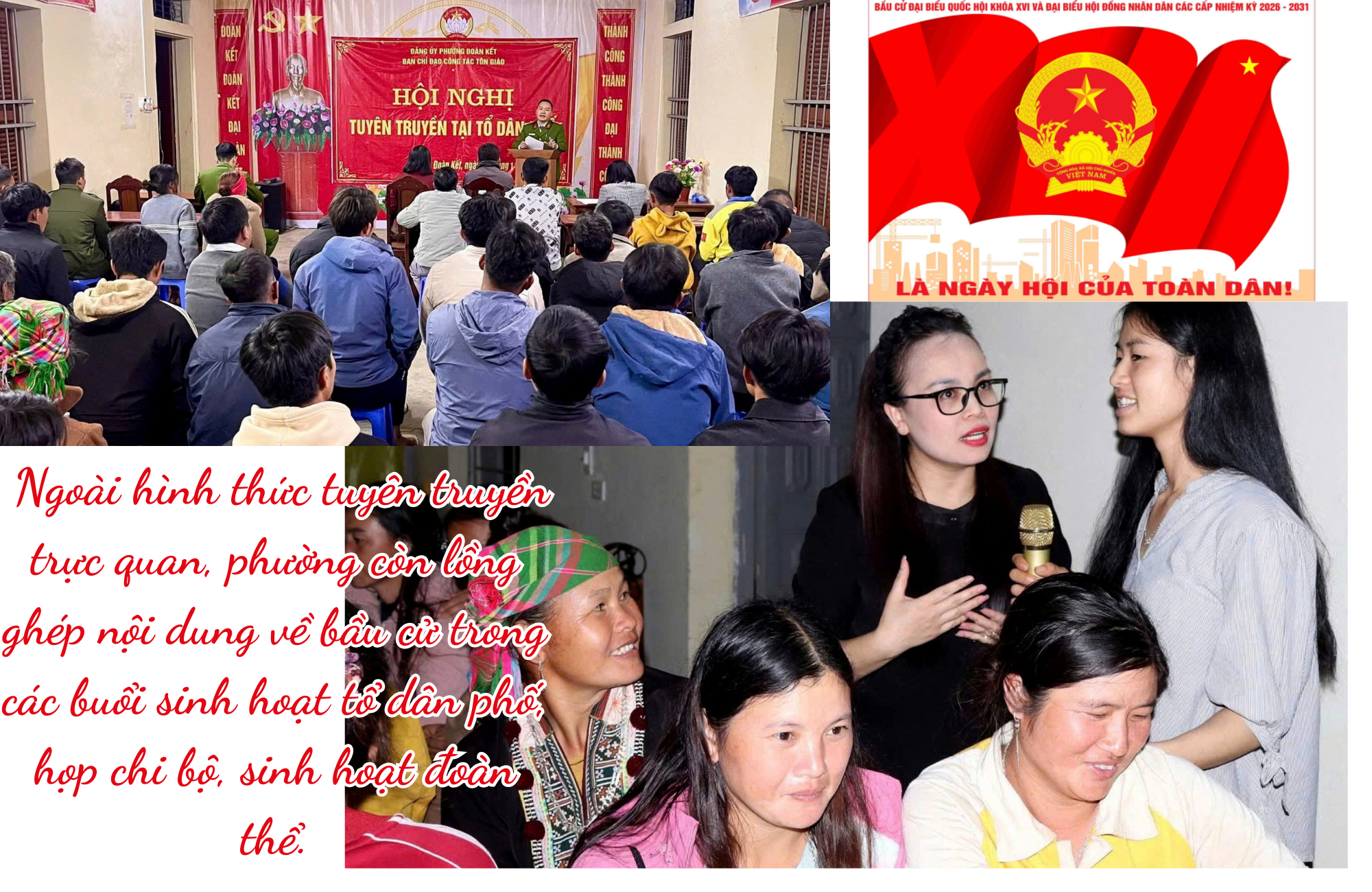 Ngoài hình thức tuyên truyền trực quan, phường còn lồng ghép nội dung về bầu cử trong các buổi sinh hoạt tổ dân phố, họp chi bộ, sinh hoạt đoàn thể; đẩy mạnh tuyên truyền trên hệ thống loa truyền thanh, các trang thông tin và mạng xã hội của phường. Song song với đó, lãnh đạo UBND, các tổ chức hội, đoàn thể tăng cường xuống cơ sở kiểm tra tình hình và nắm bắt thông tin dư luận, định hướng và tuyên truyền về bầu cử tới người dân.