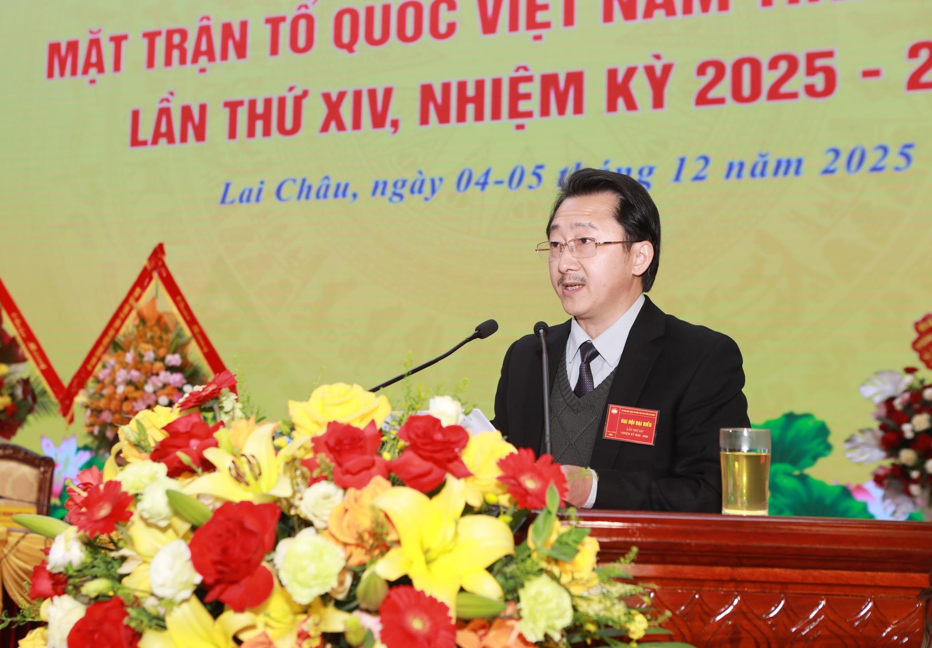 Phát biểu chỉ đạo tại đại hội, đồng chí Lê Minh Ngân - Bí thư Tỉnh ủy đánh giá cao những kết quả nổi bật của MTTQ các cấp trên địa bàn tỉnh trong nhiệm kỳ vừa qua. Đồng chí Bí thư Tỉnh ủy nhấn mạnh: Nghị quyết Đại hội Đại biểu Đảng bộ tỉnh lần thứ 15 đã xác định mục tiêu phấn đấu đến năm 2030 đưa Lai Châu trở thành tỉnh phát triển trung bình của vùng trung du và miền núi phía Bắc. Để thực hiện thắng lợi mục tiêu đó, đòi hỏi sự vào cuộc quyết liệt, khát vọng vươn lên của cả hệ thống chính trị, trong đó có MTTQ và các tổ chức chính trị - xã hội trong toàn tỉnh.