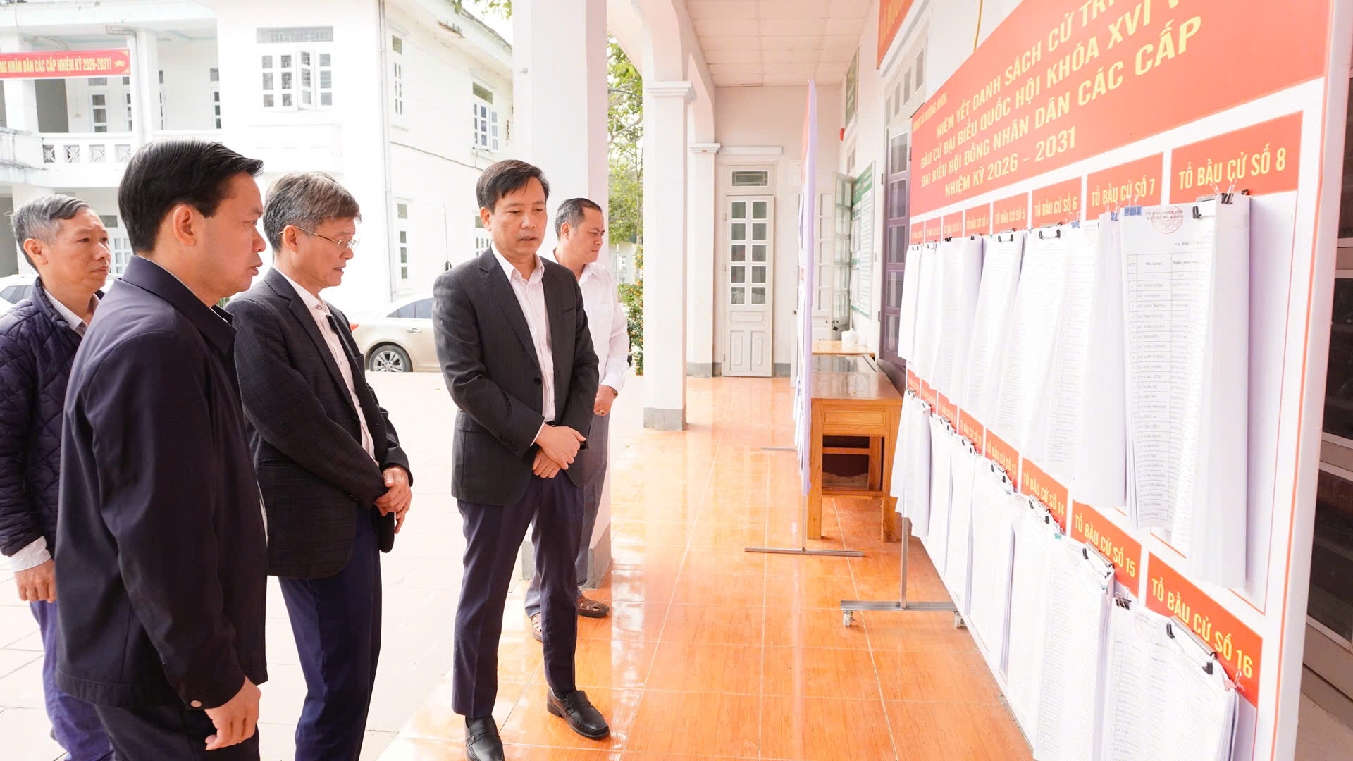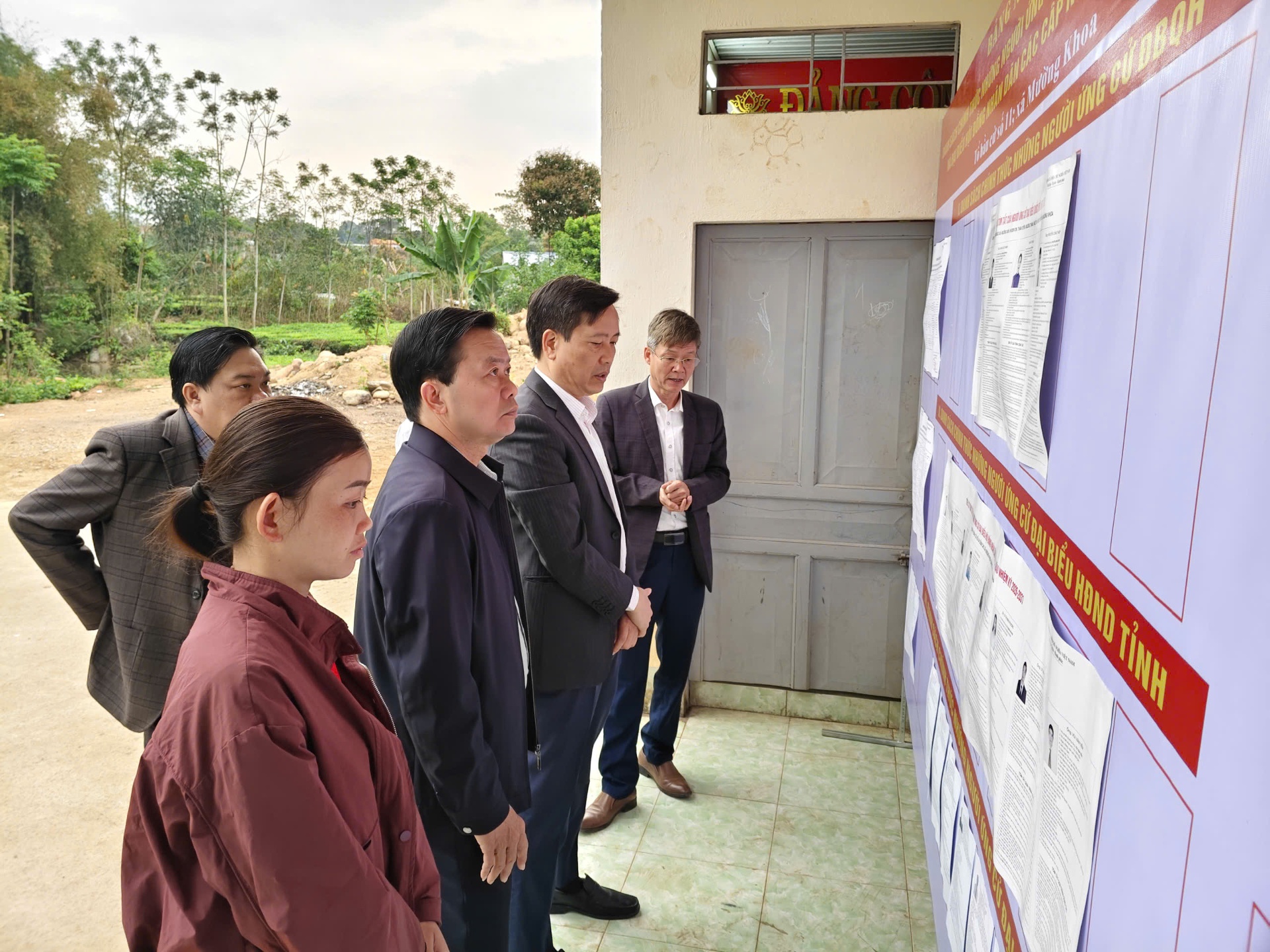 Trưởng Ban Tổ chức Tỉnh ủy Lê Thị Hường kiểm tra công tác bầu cử tại xã Lê Lợi