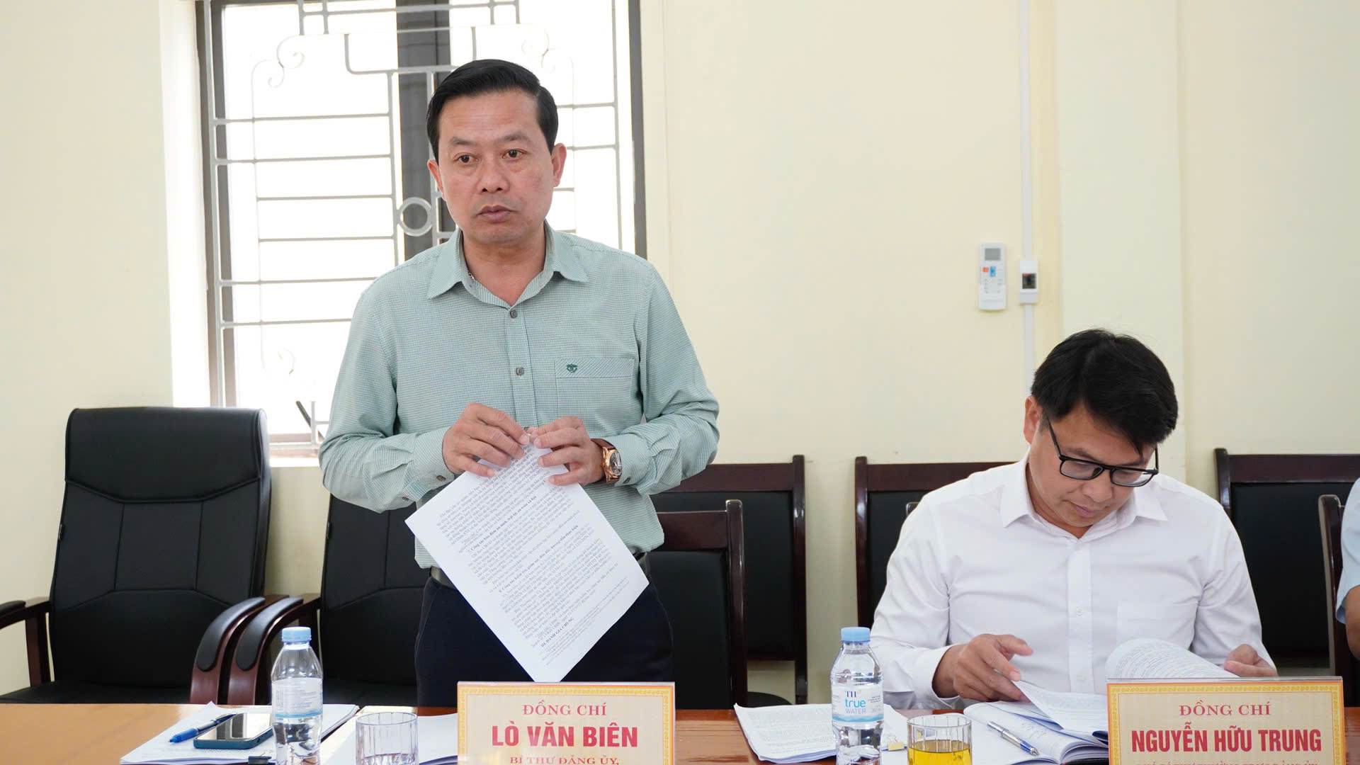 Bí thư Đảng ủy xã Mường Khoa Lò Văn Biên báo cáo tại buổi làm việc.