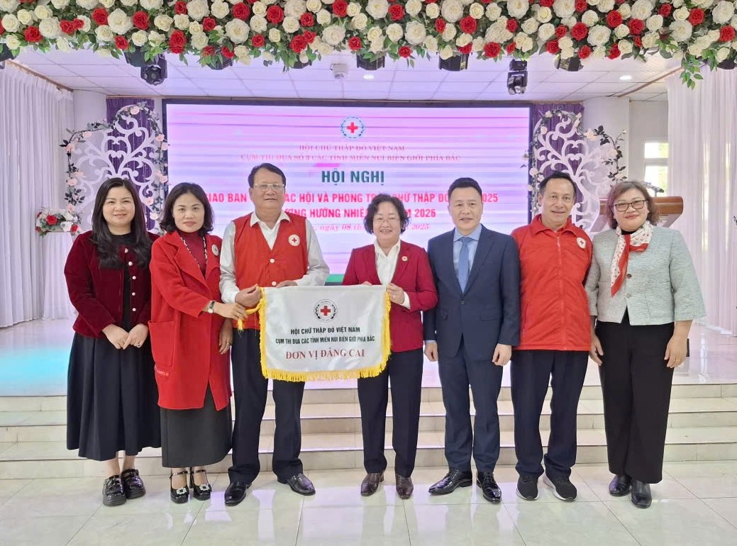Lãnh đạo Hội Chữ thập đỏ tỉnh Điện Biên nhận Cờ đăng cai cụm trưởng Cụm thi đua số 3 năm 2026.