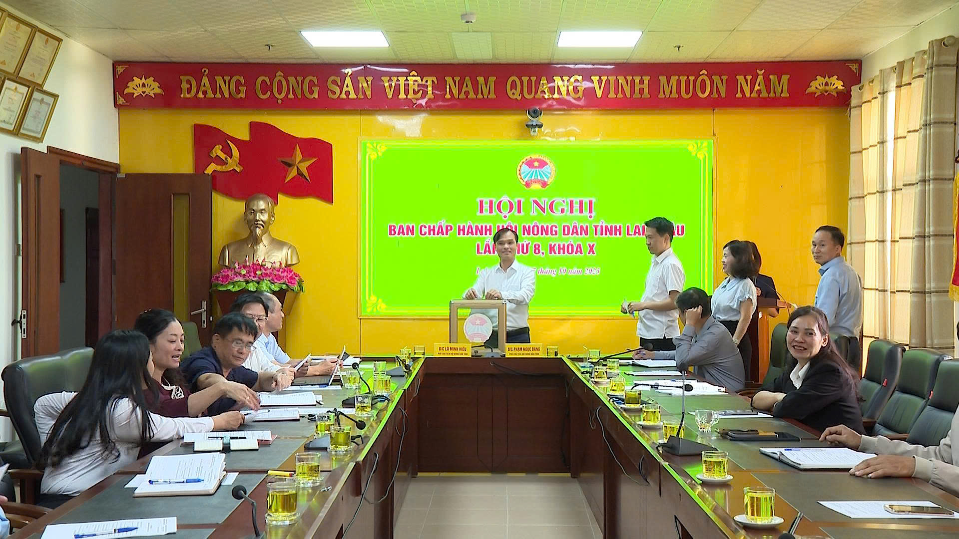 Bằng hình thức bỏ phiếu, 100% số đại biểu có mặt tại hội nghị nhất trí bầu bổ sung Ủy viên Ban Chấp hành, Ủy viên Ban Thường vụ, chức danh Chủ tịch Hội Nông dân tỉnh nhiệm kỳ 2023 - 2028 đối với đồng chí Vương Đức Lợi - Phó Giám đốc Sở Nông nghiệp và Môi trường tỉnh.