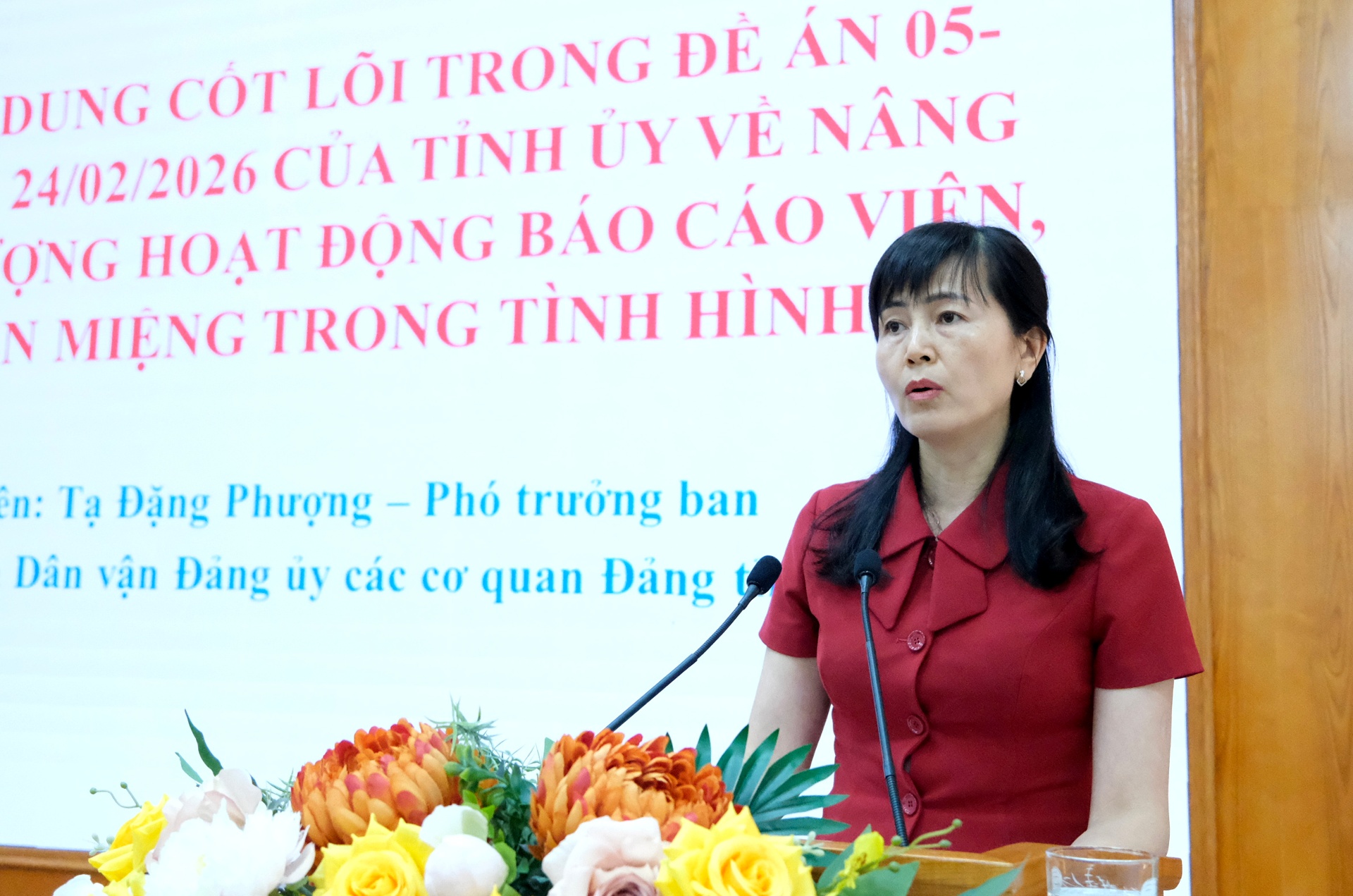 Đồng chí Khoàng Thị Thanh Nga - Tỉnh ủy viên, Phó Bí thư Đảng ủy Các cơ quan Đảng tỉnh chủ trì hội nghị. Cùng dự hội nghị còn có các đồng chí báo cáo viên Đảng bộ Các cơ quan Đảng tỉnh; đại diện cấp ủy các chi, Đảng bộ cơ sở; lãnh đạo chuyên trách các cơ quan tham mưu, giúp việc của Đảng bộ Các cơ quan Đảng tỉnh…