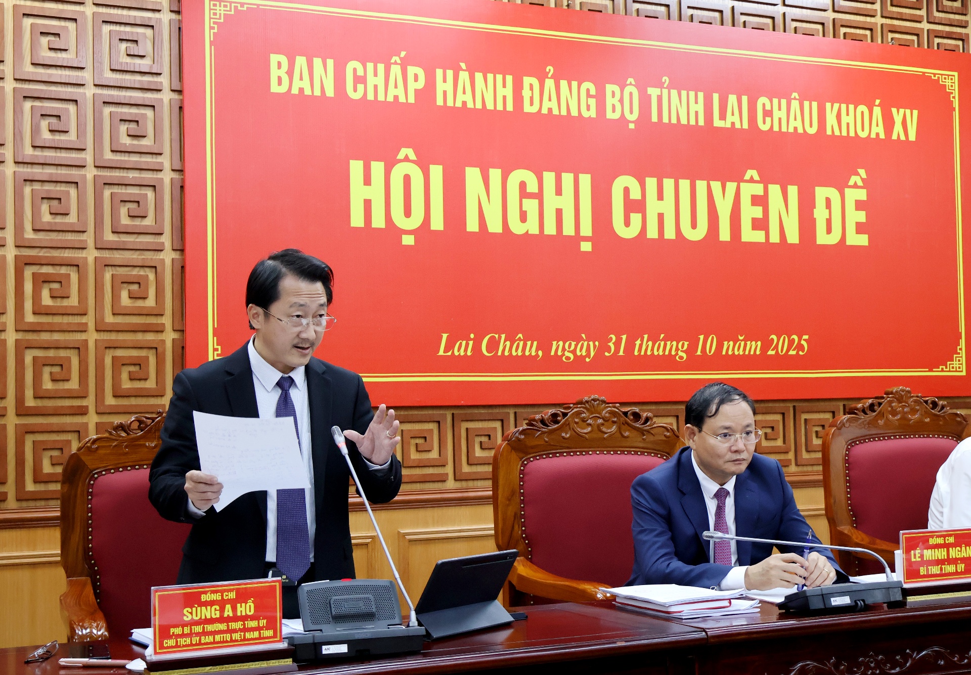 Sáng 31/10, Ban Chấp hành (BCH) Đảng bộ tỉnh tổ chức Hội nghị chuyên đề để cho ý kiến vào báo cáo tổng kết, rút kinh nghiệm công tác chuẩn bị và tổ chức đại hội đảng bộ các cấp nhiệm kỳ 2025 - 2030 và nhiều nội dung quan trọng khác. Chủ trì hội nghị có các đồng chí: Lê Minh Ngân - Bí thư Tỉnh ủy; Sùng A Hồ - Phó Bí thư Thường trực Tỉnh ủy, Chủ tịch Ủy ban MTTQ Việt Nam tỉnh; Lê Văn Lương - Phó Bí thư Tỉnh ủy, Chủ tịch UBND tỉnh.