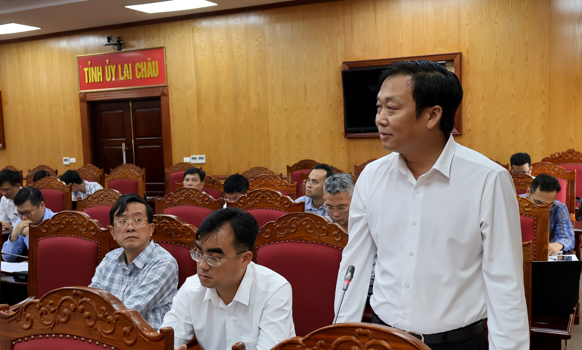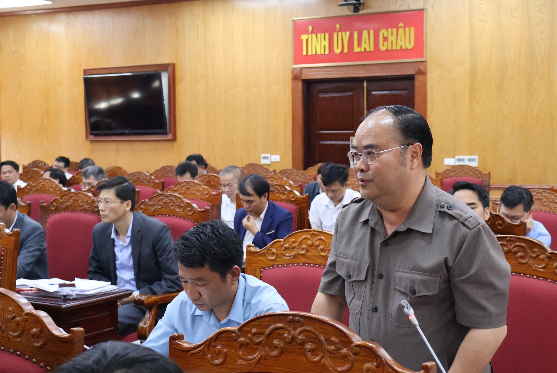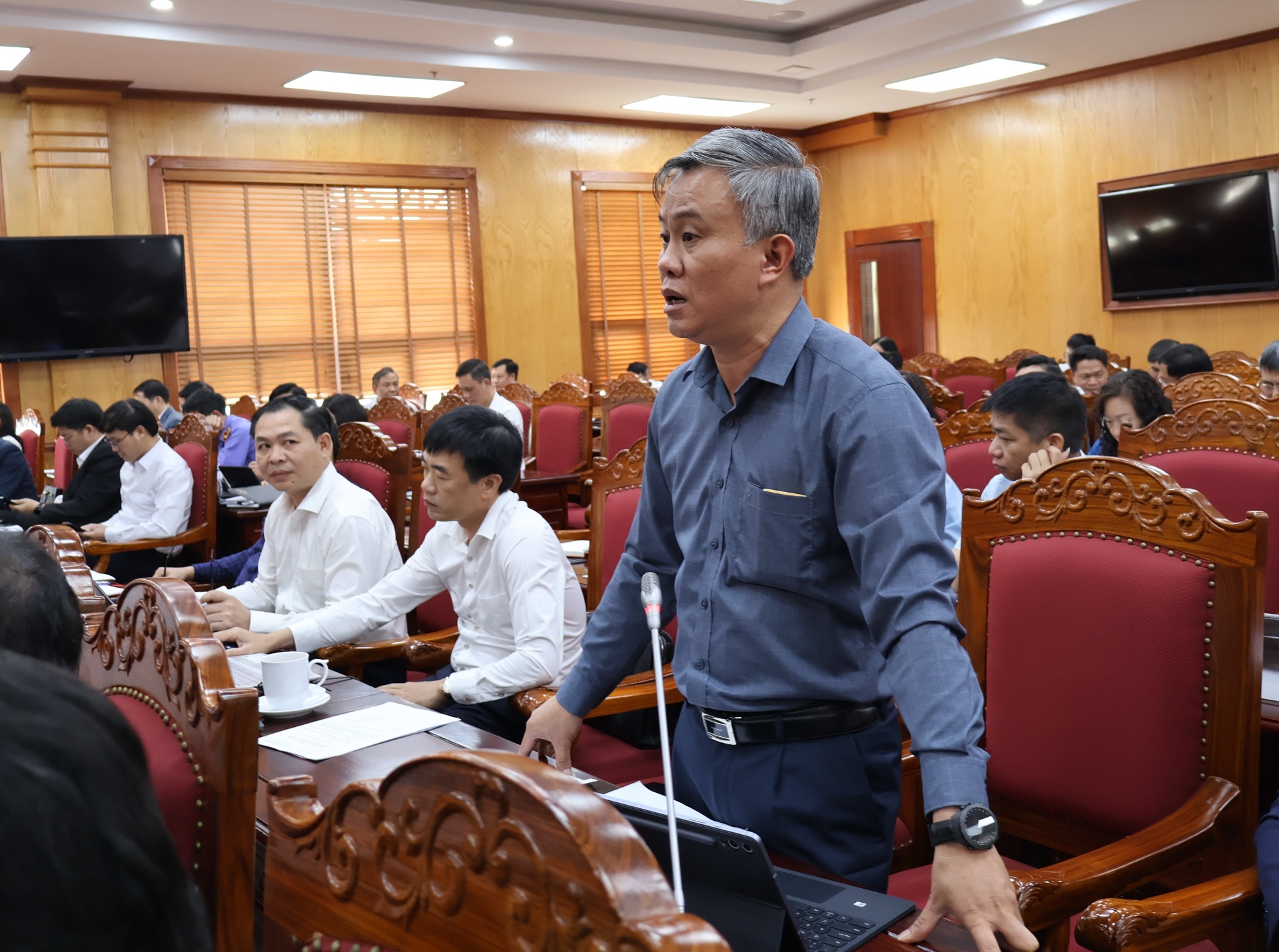 Các đồng chí lãnh đạo các sở, ngành tham gia ý kiến thảo luận tại hội nghị.