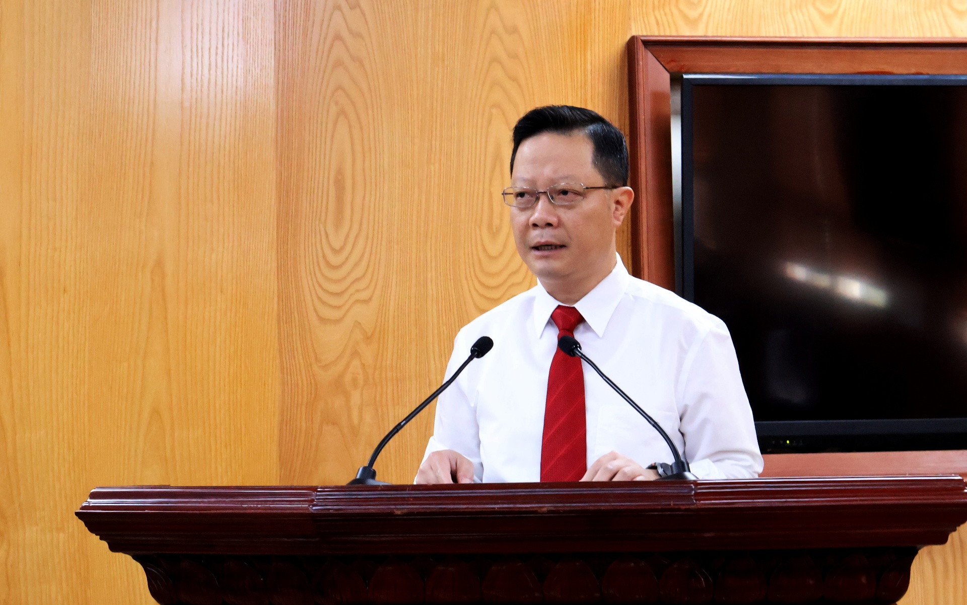 Đồng chí Nguyễn Ngọc Vinh - Ủy viên Ban Thường vụ, Chủ nhiệm Ủy ban Kiểm tra Tỉnh ủy thông qua nội dung tại hội nghị.