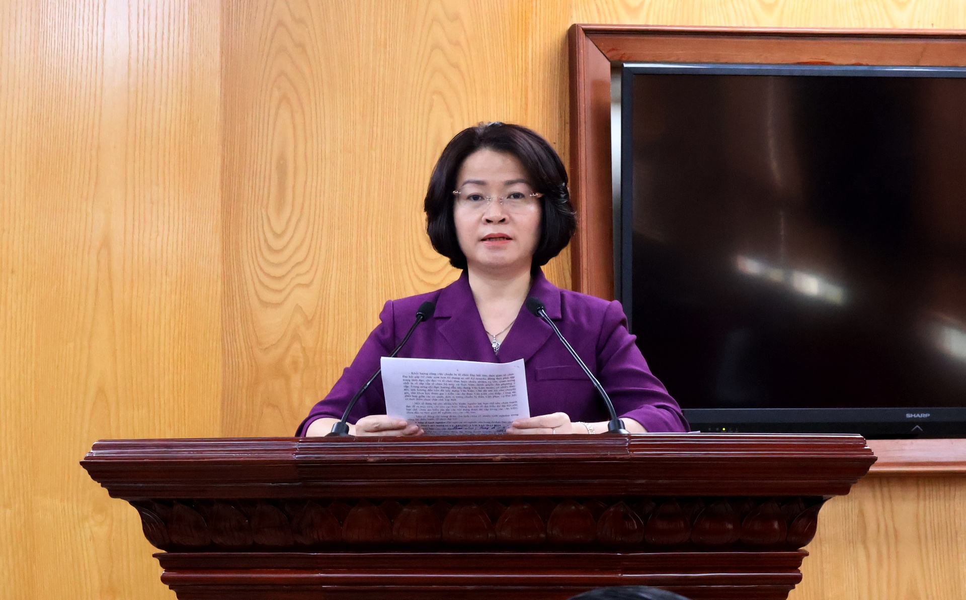 Đồng chí Lê Thị Hường - Ủy viên Ban Thường vụ, Trưởng Ban Tổ chức Tỉnh ủy thông qua nội dung tại hội nghị.