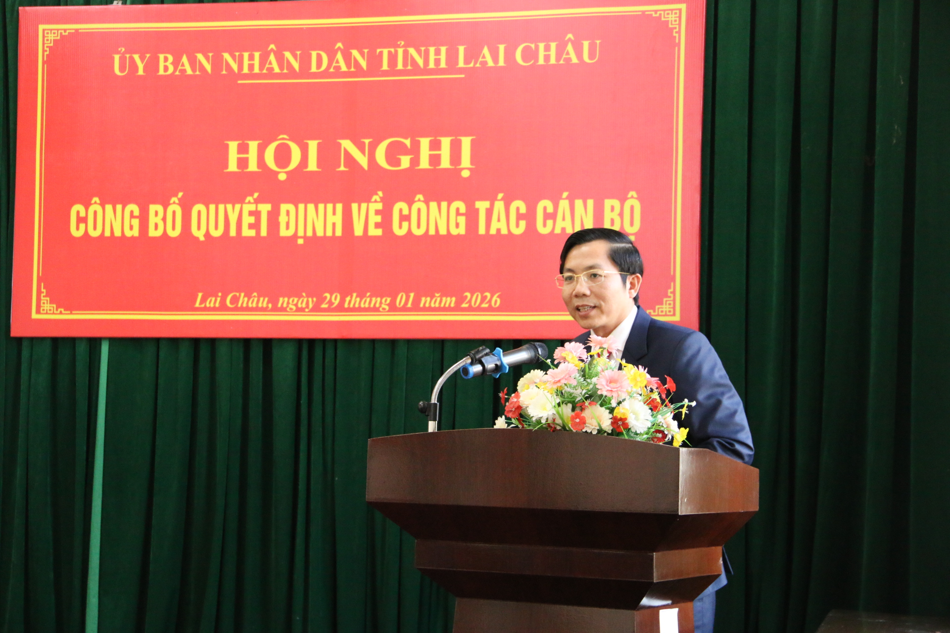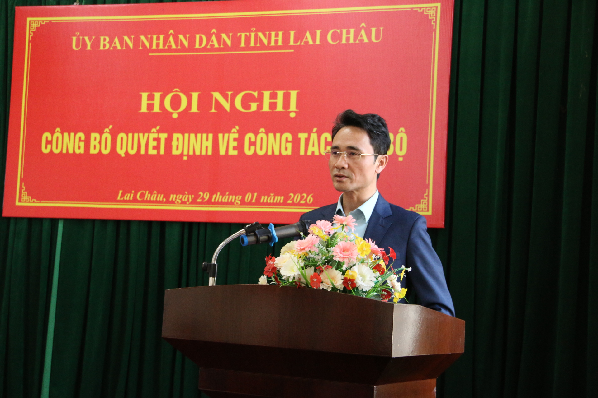 Tại hội nghị, đồng chí Trần Việt Thắng – Phó Giám đốc Sở Nội vụ đã công bố Quyết định số 95/QĐ- UBND tỉnh về việc điều động, bổ nhiệm đồng chí Nguyễn Bá Nho – Giám đốc Ban Quản lý dự án đầu tư xây dựng các công trình Nông nghiệp và Phát triển nông thôn, giữ chức vụ Phó Giám đốc Sở Nông nghiệp và Môi trường tỉnh Lai Châu. Thời hạn bổ nhiệm là 5 năm, kể từ ngày 1/2/2026.