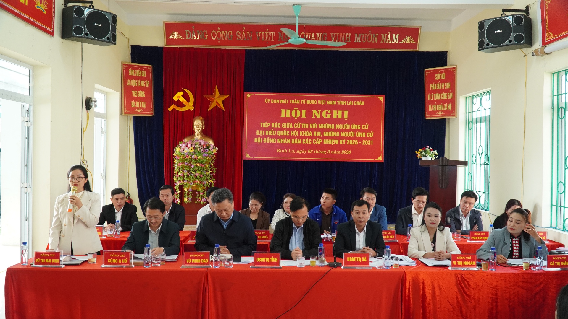 Tại hội nghị, các cử tri đã nghe đại diện lãnh đạo Ủy ban MTTQ Việt Nam tỉnh giới thiệu tóm tắt tiểu sử các ứng cử viên ĐBQH khóa XVI, Đại biểu HĐND tỉnh nhiệm kỳ 2026 – 2031. Từng ứng cử viên đã trình bày với cử tri về chương trình hành động của mình nếu được bầu làm ĐBQH, Đại biểu HĐND tỉnh. Nội dung chương trình hành động của các ứng cử viên đều thể hiện rõ quyết tâm, tầm nhìn và định hướng hành động cụ thể trên từng lĩnh vực, gắn với yêu cầu phát triển của địa phương và đất nước. Trong chương trình hành động, các ứng cử viên khẳng định, nếu được cử tri tín nhiệm bầu làm ĐBQH, đại biểu HĐND tỉnh sẽ không ngừng rèn luyện, phấn đấu để xứng đáng với niềm tin và kỳ vọng của nhân dân, giữ mối liên hệ chặt chẽ, thường xuyên lắng nghe, tiếp thu đầy đủ tâm tư, nguyện vọng chính đáng của cử tri. Đồng thời, các ứng cử viên cam kết nâng cao hiệu lực, hiệu quả và chất lượng hoạt động của Quốc hội và HĐND tỉnh, tích cực tham gia xây dựng, hoàn thiện hệ thống chính sách, pháp luật, góp phần thúc đẩy phát triển kinh tế - xã hội của tỉnh Lai Châu nói riêng và cả nước nói chung, vì mục tiêu phát triển bền vững và nâng cao đời sống nhân dân.