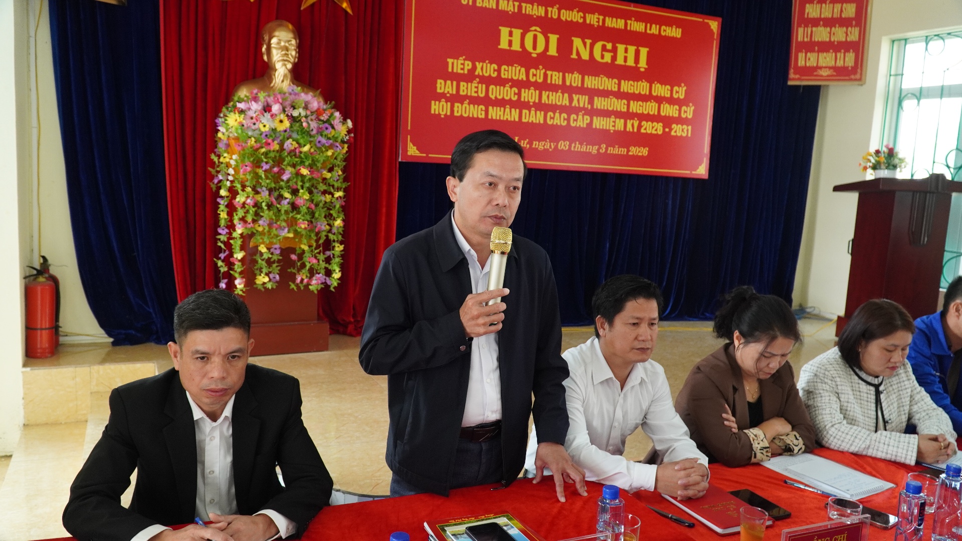 Sáng 3/3, Ủy ban Mặt trận Tổ quốc (UBMTTQ) Việt Nam tỉnh Lai Châu tổ chức Hội nghị tiếp xúc cử tri với những người ứng cử Đại biểu Quốc hội (ĐBQH) khóa XVI và Hội đồng Nhân dân (HĐND) các cấp, nhiệm kỳ 2026-2031 tại Đơn vị bầu cử số 2. Dự hội nghị có đồng chí Sùng A Hồ - Phó Bí thư Thường trực Tỉnh ủy; các đại biểu ứng cử ĐBQH khóa XVI và HĐND các cấp nhiệm kỳ 2026-2031.