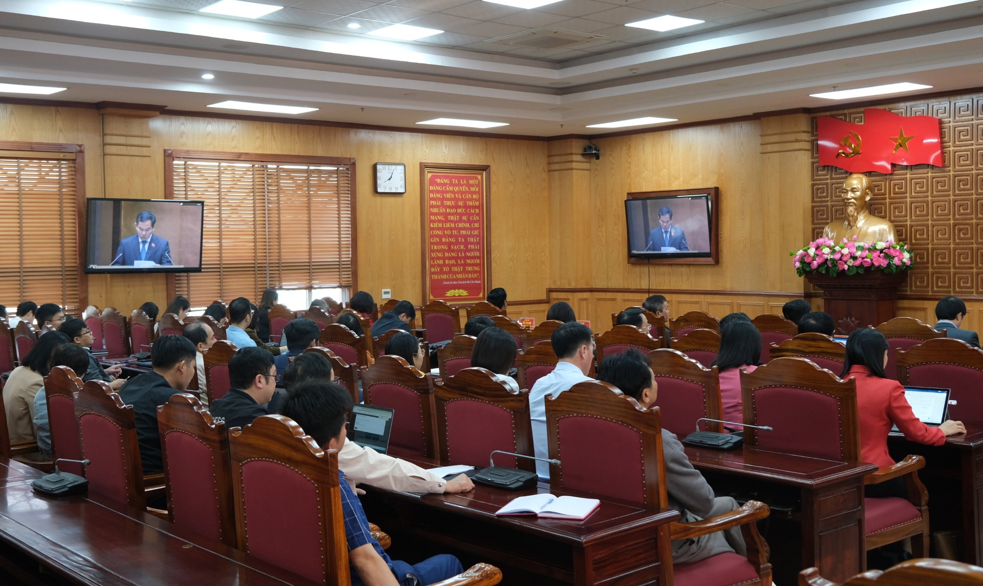 Tại điểm cầu Lai Châu, các đại biểu đã tập trung lắng nghe quán triệt tinh thần chỉ đạo từ Trung ương để yêu cầu các cấp, ngành, địa phương trong tỉnh khẩn trương xây dựng kế hoạch, phân công nhiệm vụ cụ thể, chủ động rà soát nhân sự, chuẩn bị tốt các điều kiện để cuộc bầu cử tại Lai Châu diễn ra đúng quy trình, dân chủ, an toàn, đúng pháp luật và đạt kết quả cao nhất.