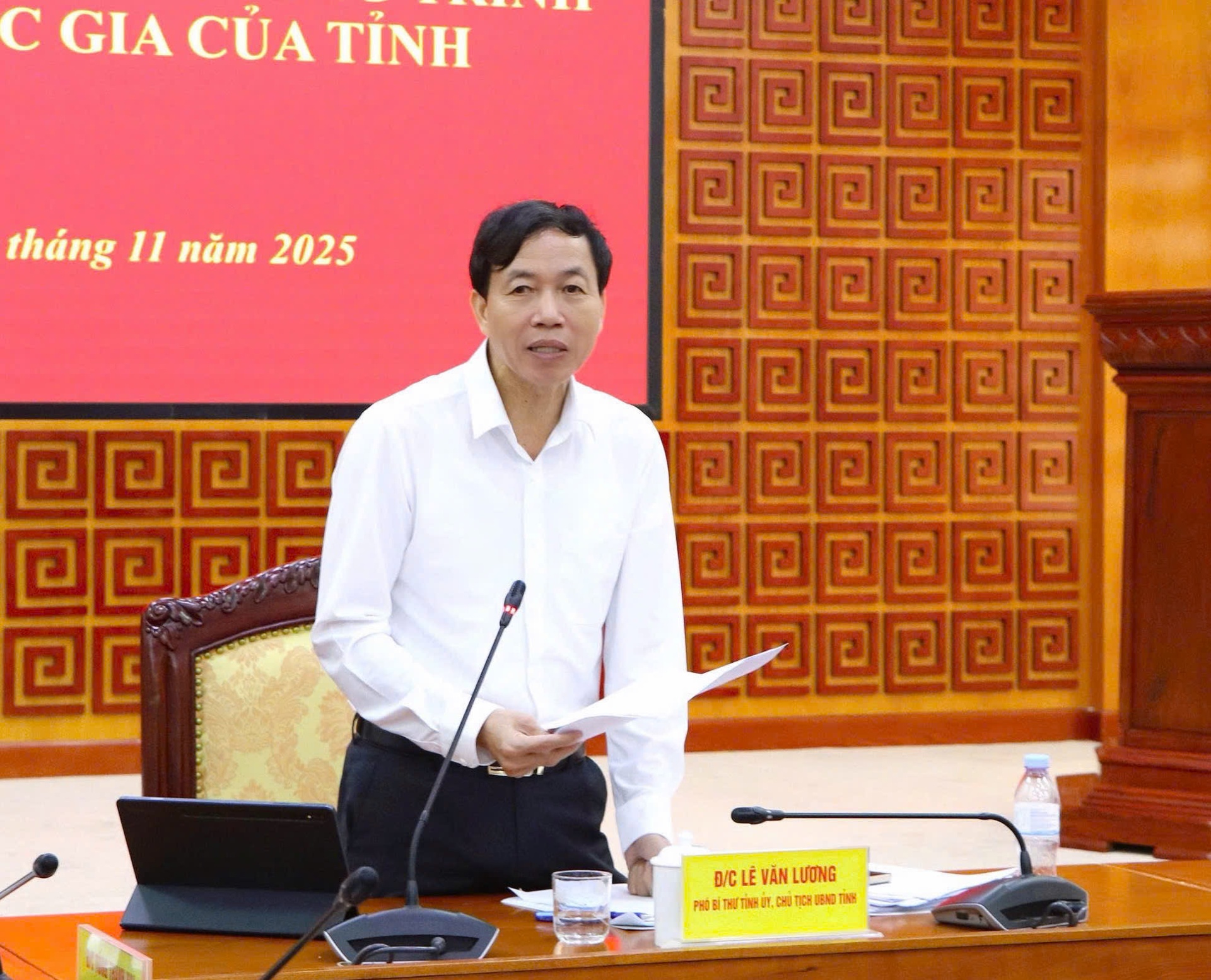 Đồng chí Lê Văn Lương - Phó Bí thư Tỉnh ủy, Chủ tịch UBND tỉnh, Trưởng Ban Chỉ đạo các Chương trình mục tiêu quốc gia tỉnh phát biểu kết luận cuộc họp.
