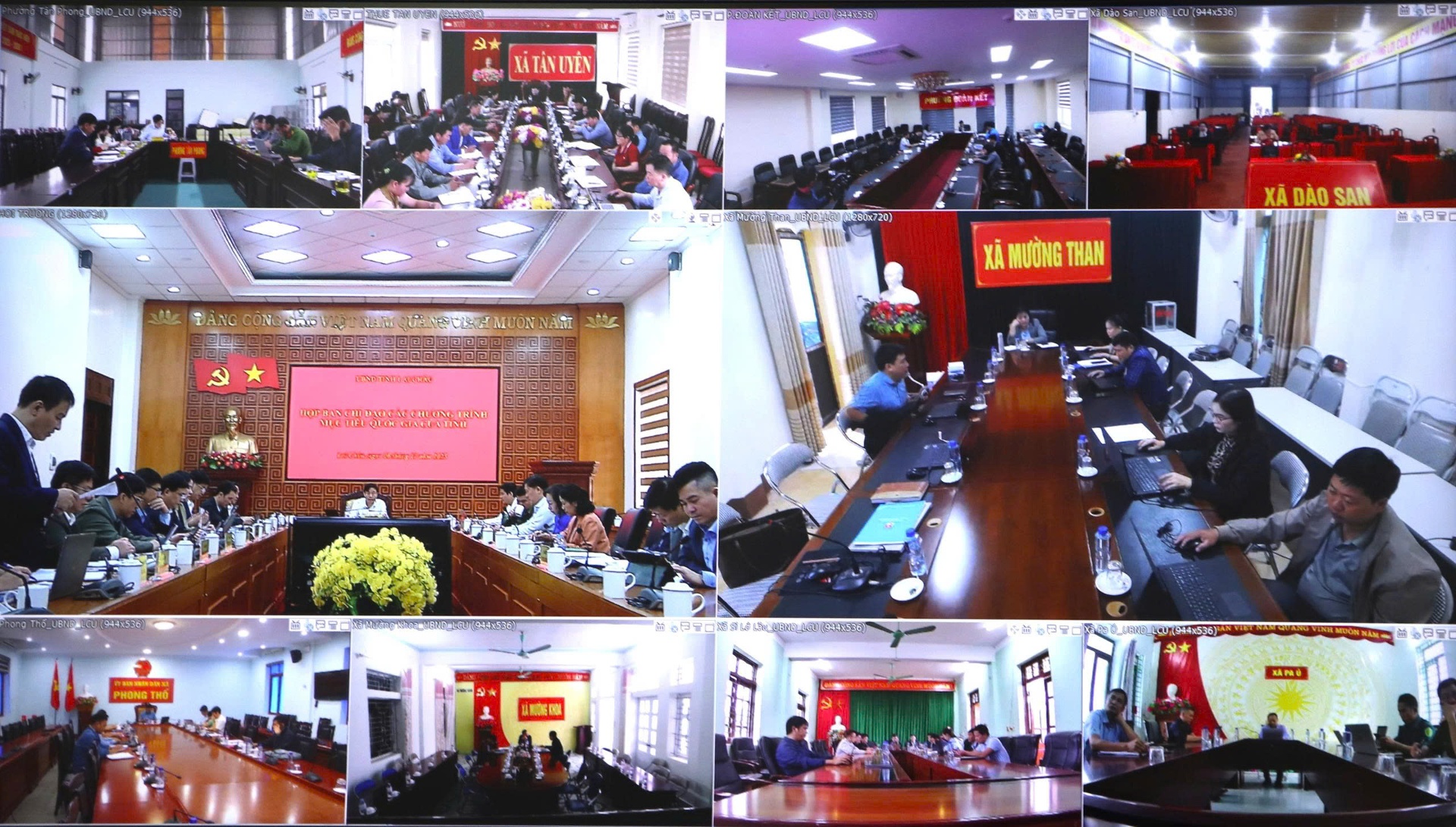 Cuộc họp được tổ chức trực tiếp kết hợp trực tuyến tới điểm cầu các xã.