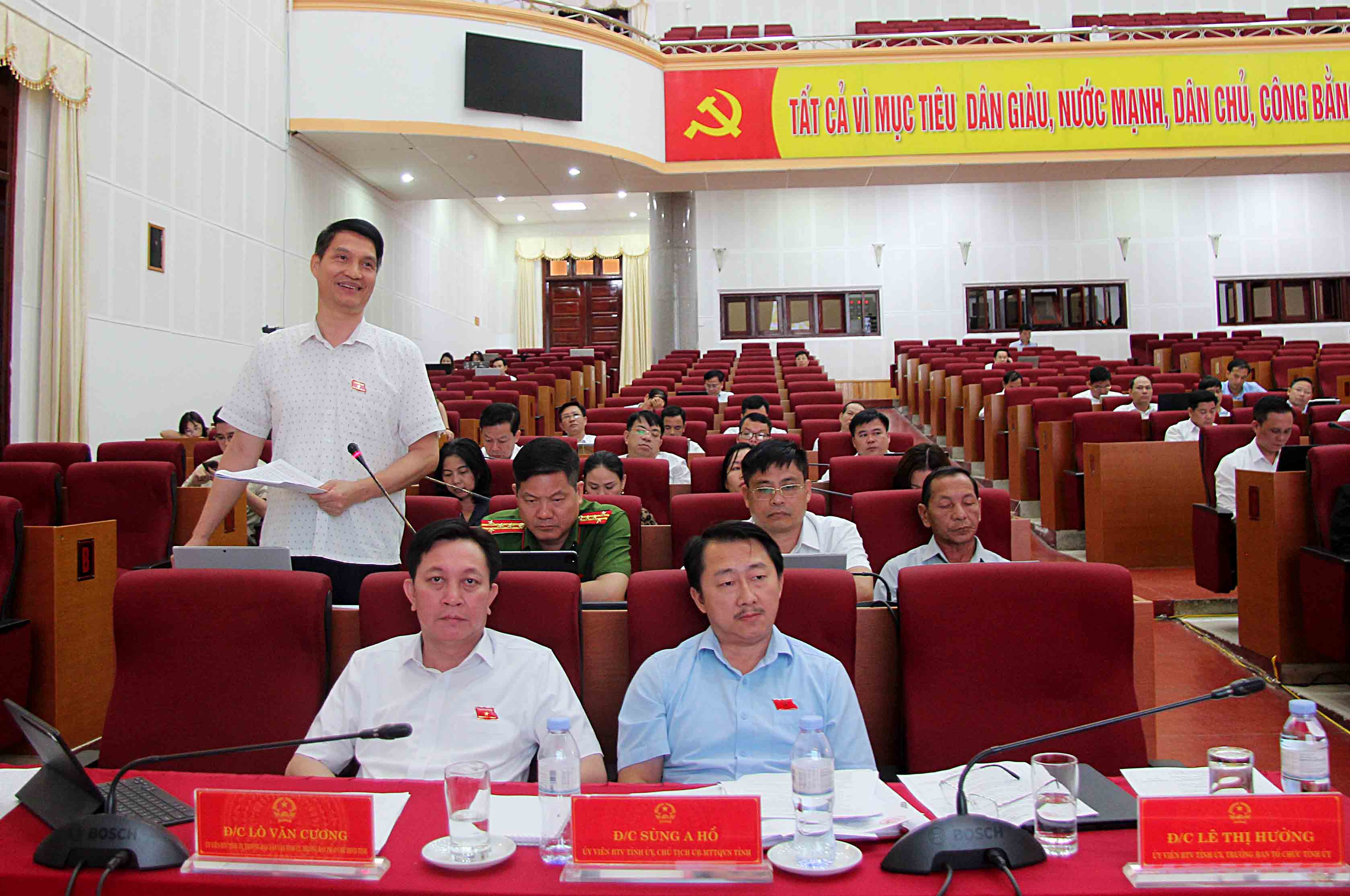 Tại kỳ họp, đại biểu HĐND tỉnh đã xem xét, thảo luận 4 tờ trình của UBND tỉnh, báo cáo thẩm tra các dự thảo nghị quyết của Ban Kinh tế - Ngân sách (HĐND tỉnh). Bao gồm: Tờ trình đề nghị ban hành Nghị quyết quy định về phân cấp quản lý, sử dụng tài sản công và thẩm quyền quyết định việc mua sắm hàng hóa, dịch vụ thuộc phạm vi quản lý của tỉnh Lai Châu; Tờ trình đề nghị ban hành Nghị quyết bổ sung kế hoạch đầu tư công trung hạn giai đoạn 2021-2025, nguồn UBND Thành phố Hà Nội hỗ trợ; Tờ trình đề nghị ban hành Nghị quyết phân bổ chi tiết kế hoạch vốn đầu tư công năm 2024, nguồn UBND Thành phố Hà Nội hỗ trợ; Tờ trình đề nghị ban hành Nghị quyết quyết định chủ trương đầu tư dự án nâng cấp, cải tạo, sửa chữa và xây mới một số hạng mục của Trung tâm Huấn luyện dự bị động viên.