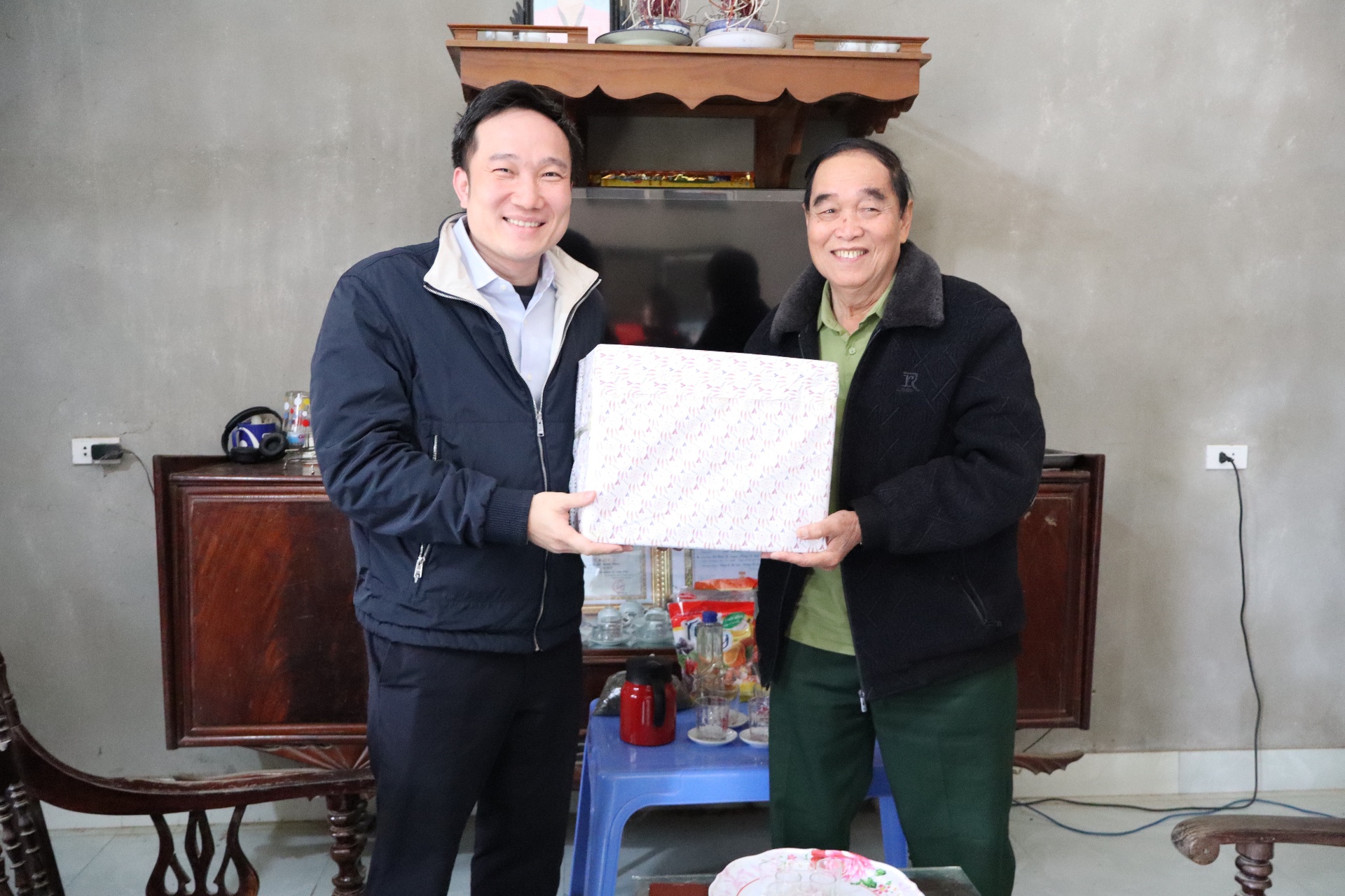 Nhân dịp này, đồng chí Nguyễn Tuấn Anh trao quà và chúc tết Đảng bộ xã và 2 đơn vị: Công an và Trạm Y tế làm nhiệm vụ trực, phục vụ nhân dịp tết Nguyên đán; thăm hỏi, tặng quà 4 hộ người có công với cách mạng và 6 đảng viên 60 năm tuổi Đảng trên địa bàn xã.