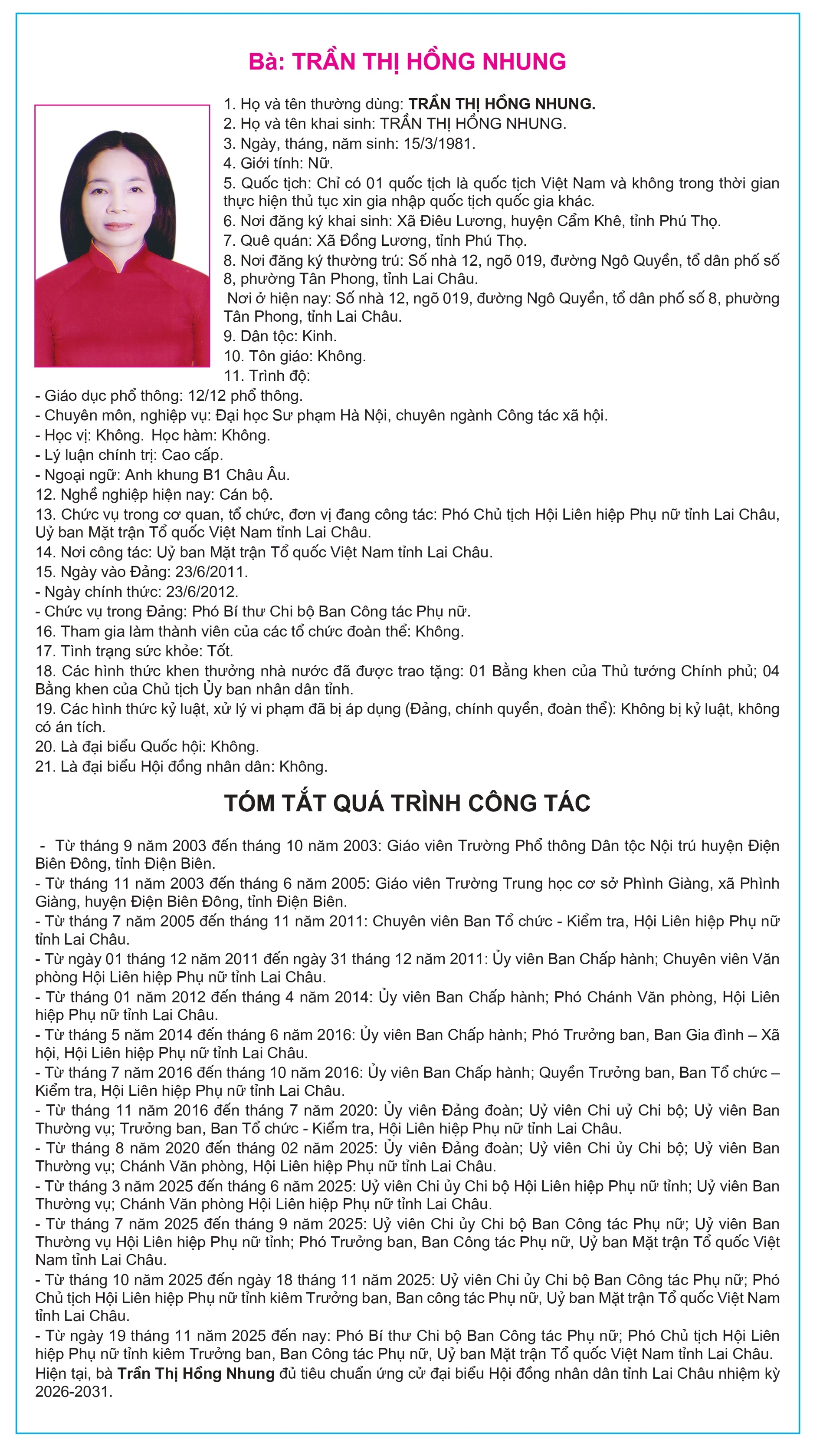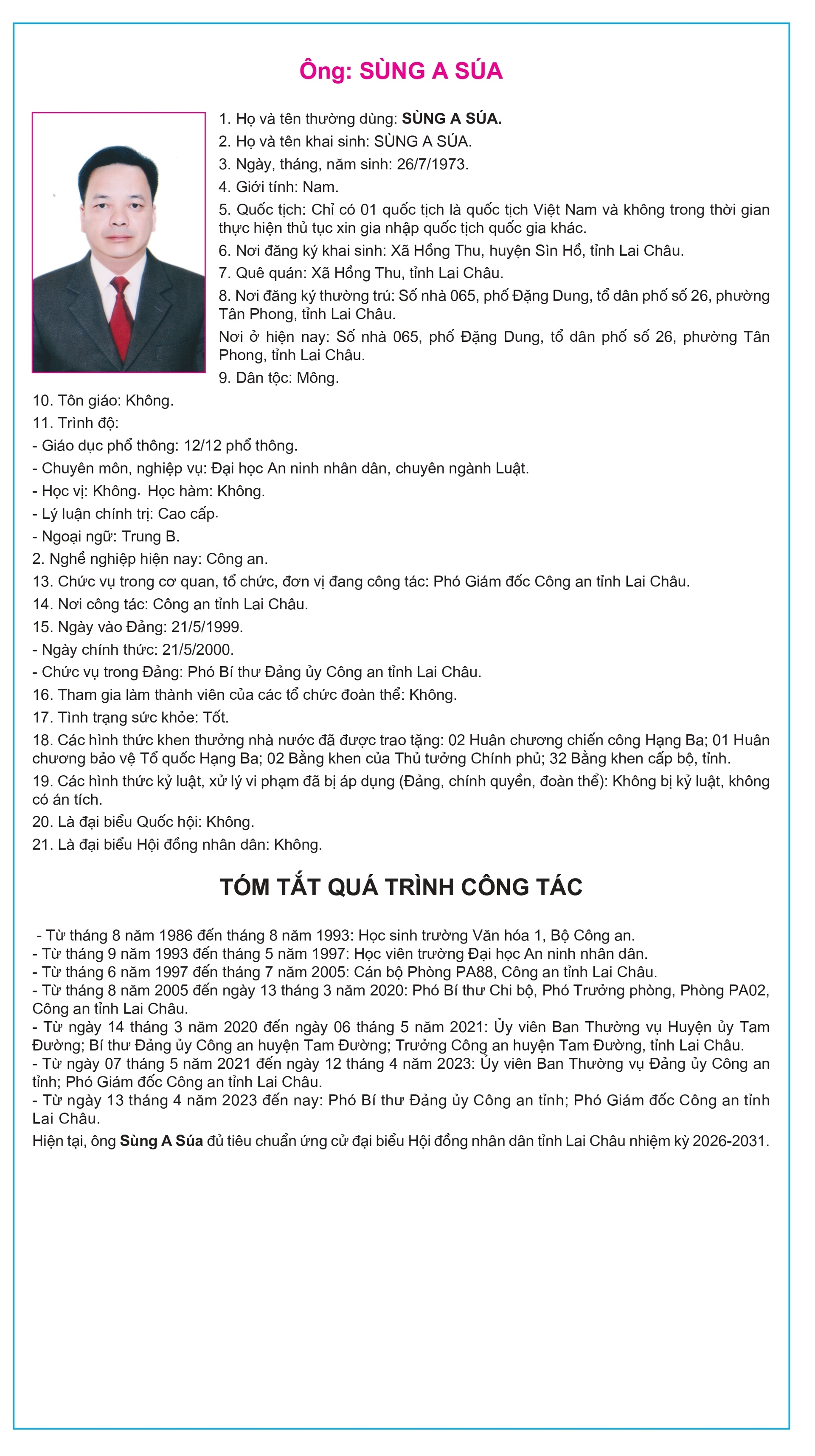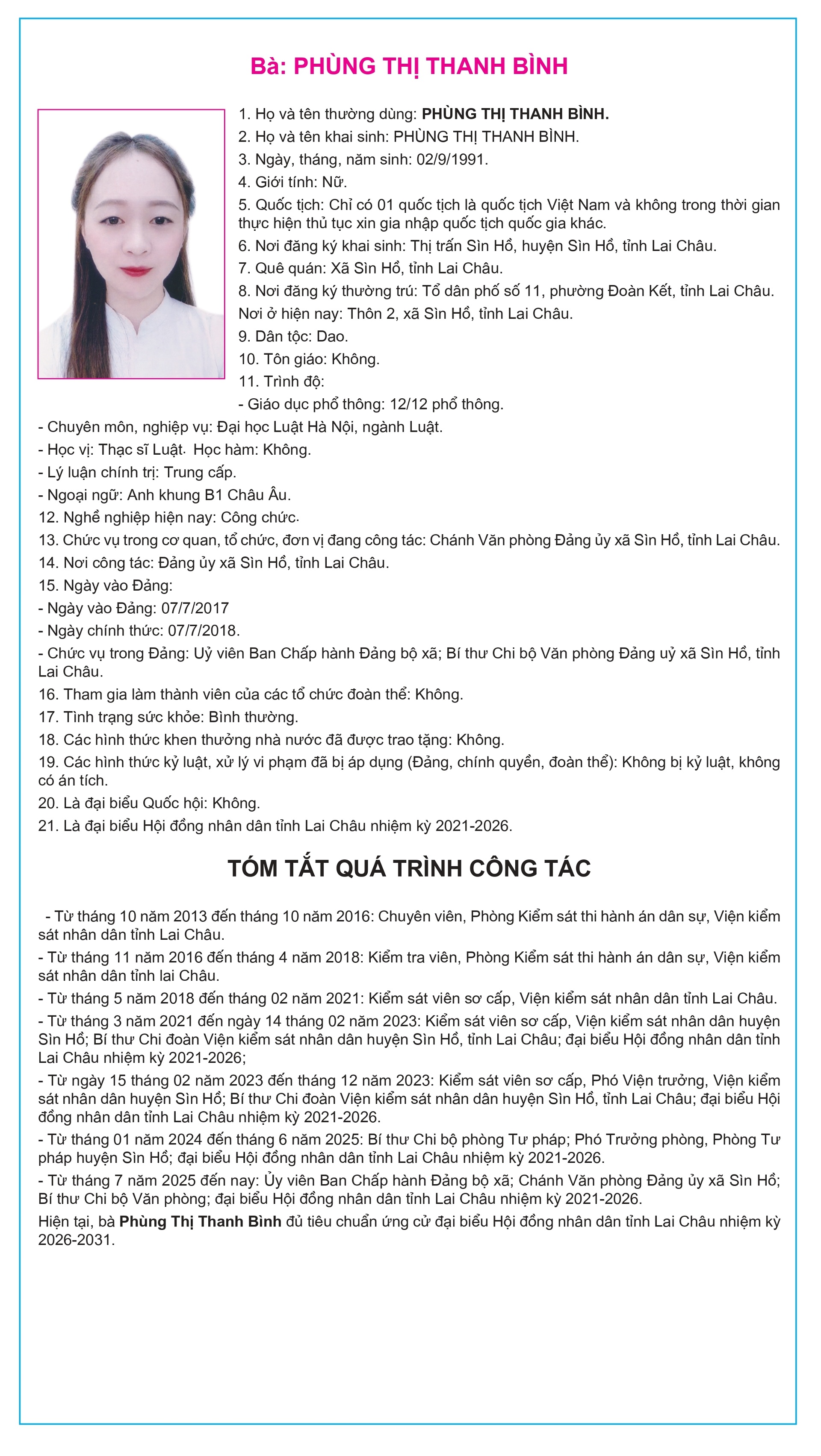 Tiểu sử tóm tắt của người ứng cử Đại biểu Hội đồng Nhân dân tỉnh Lai Châu, nhiệm kỳ 2026-2031