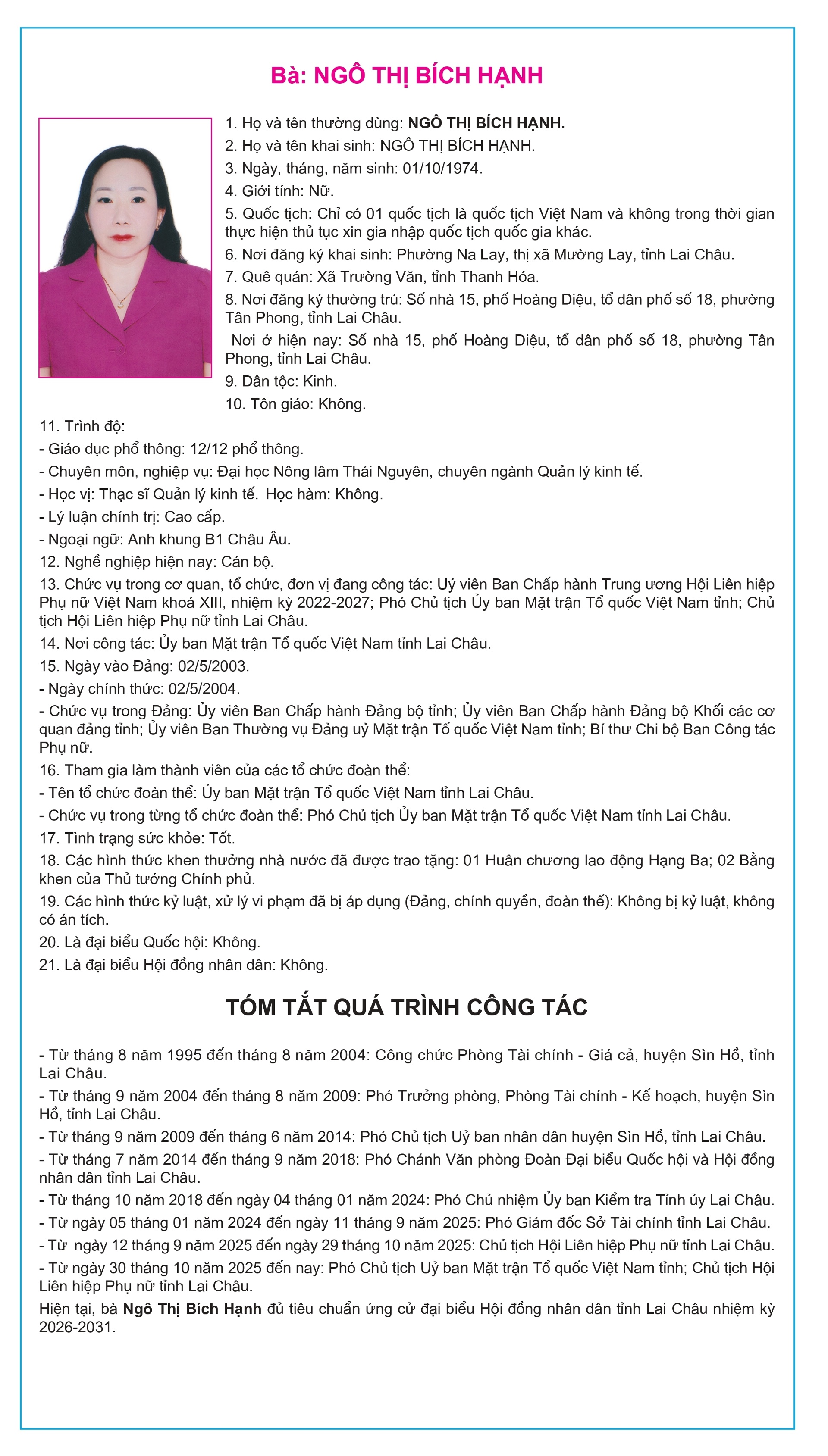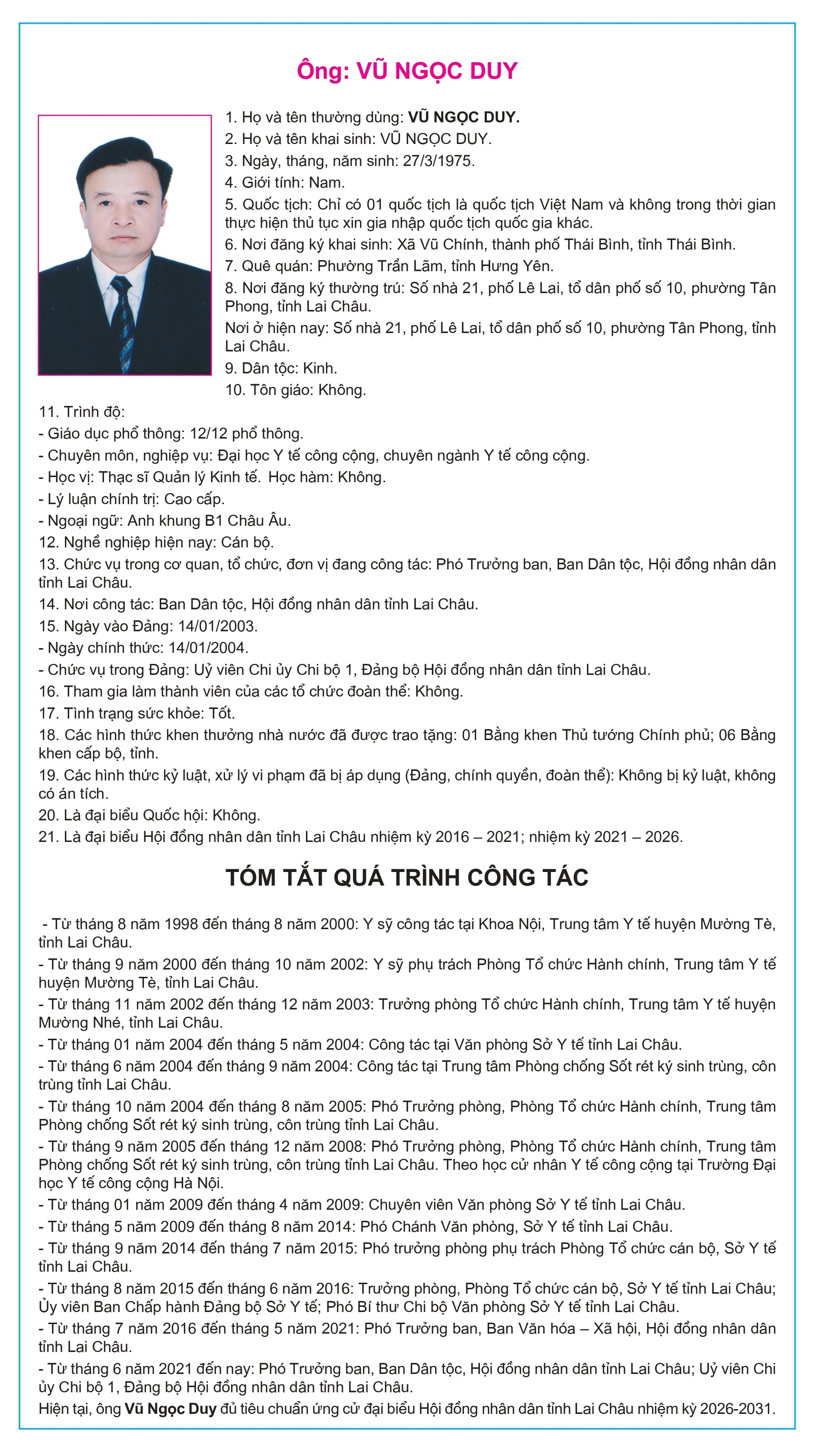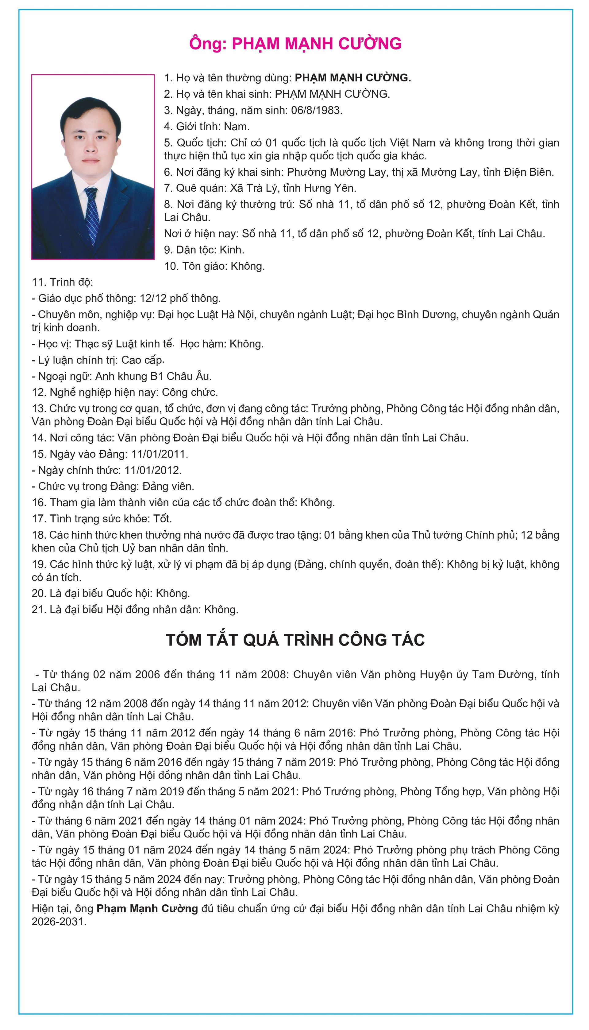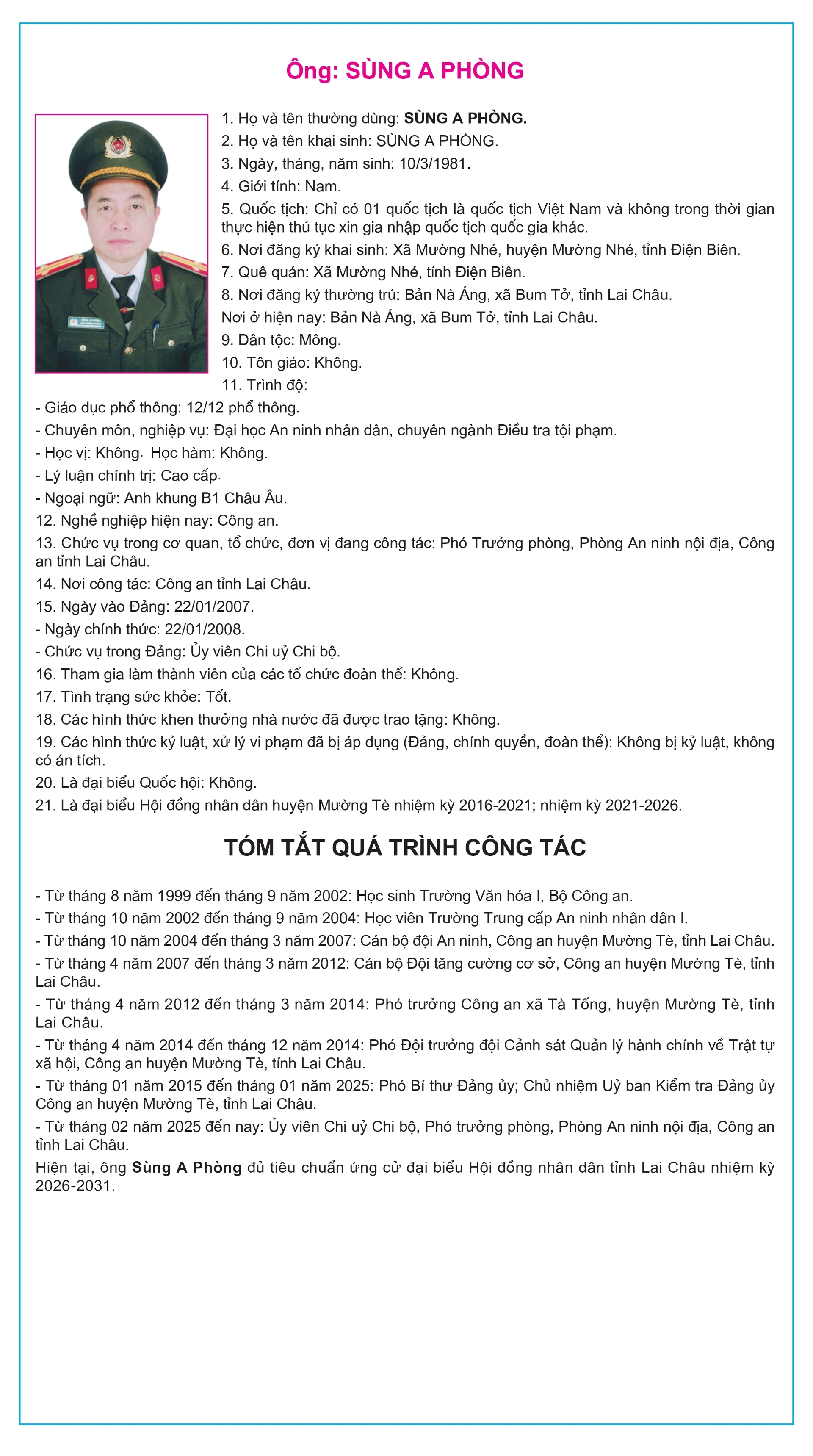 Tiểu sử tóm tắt của người ứng cử Đại biểu Hội đồng Nhân dân tỉnh Lai Châu, nhiệm kỳ 2026-2031