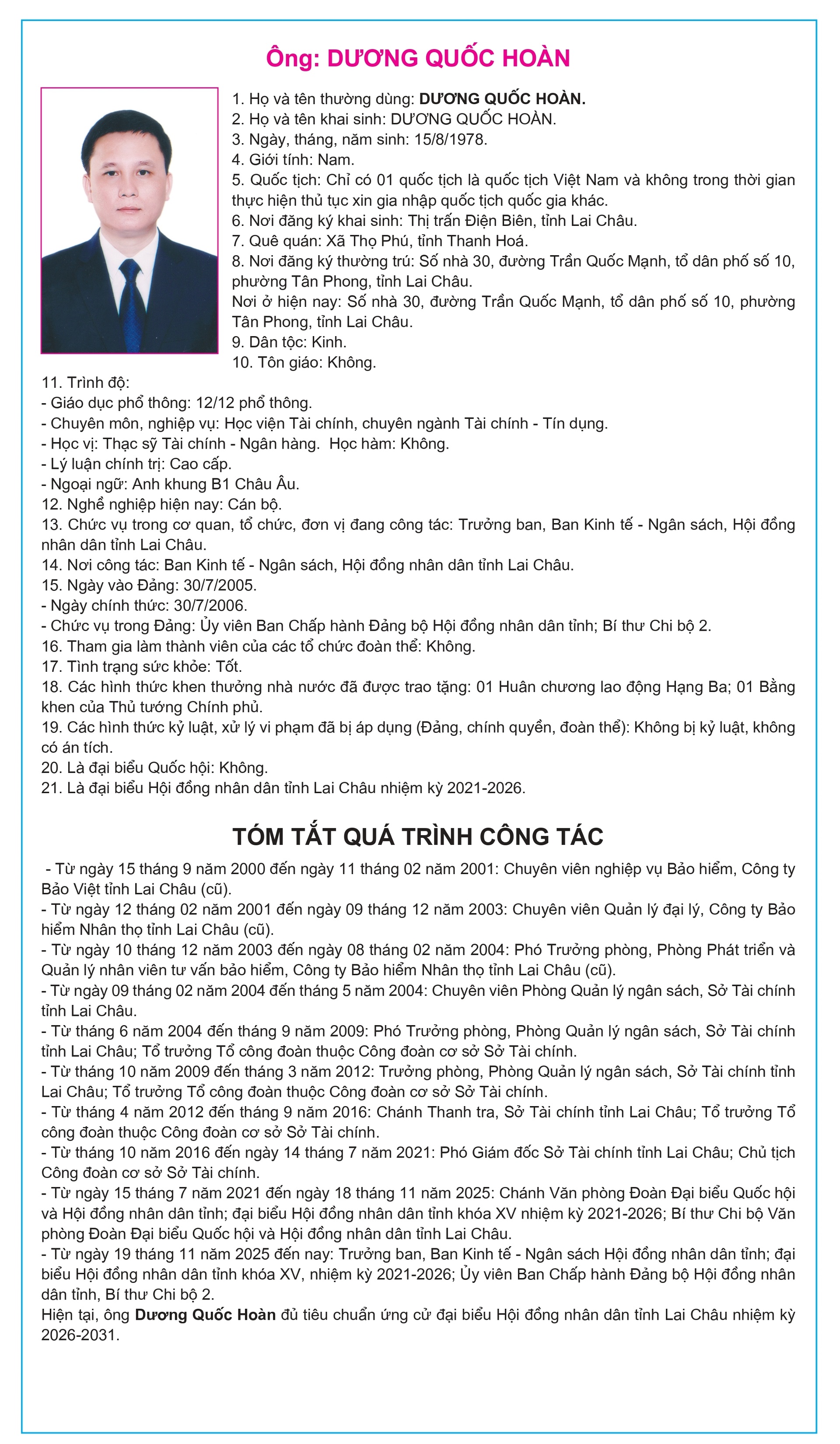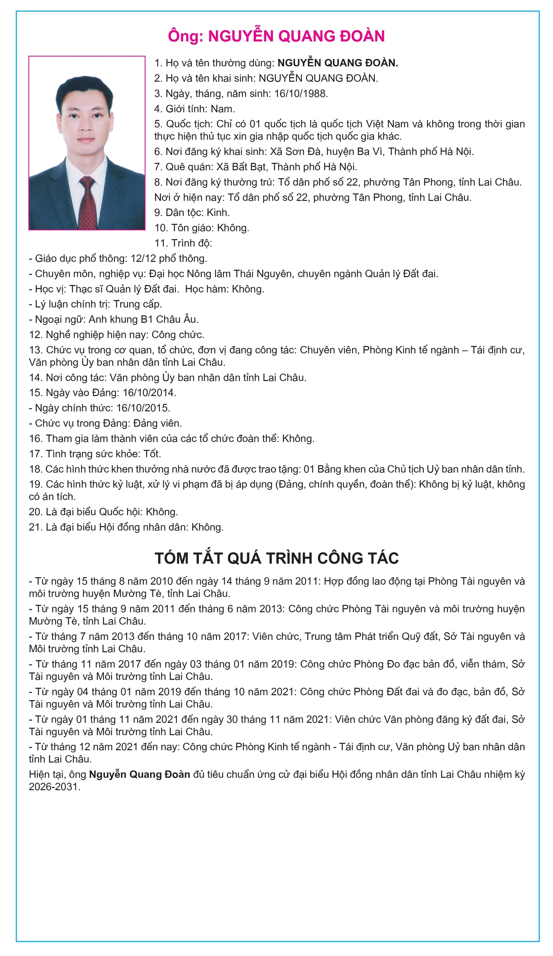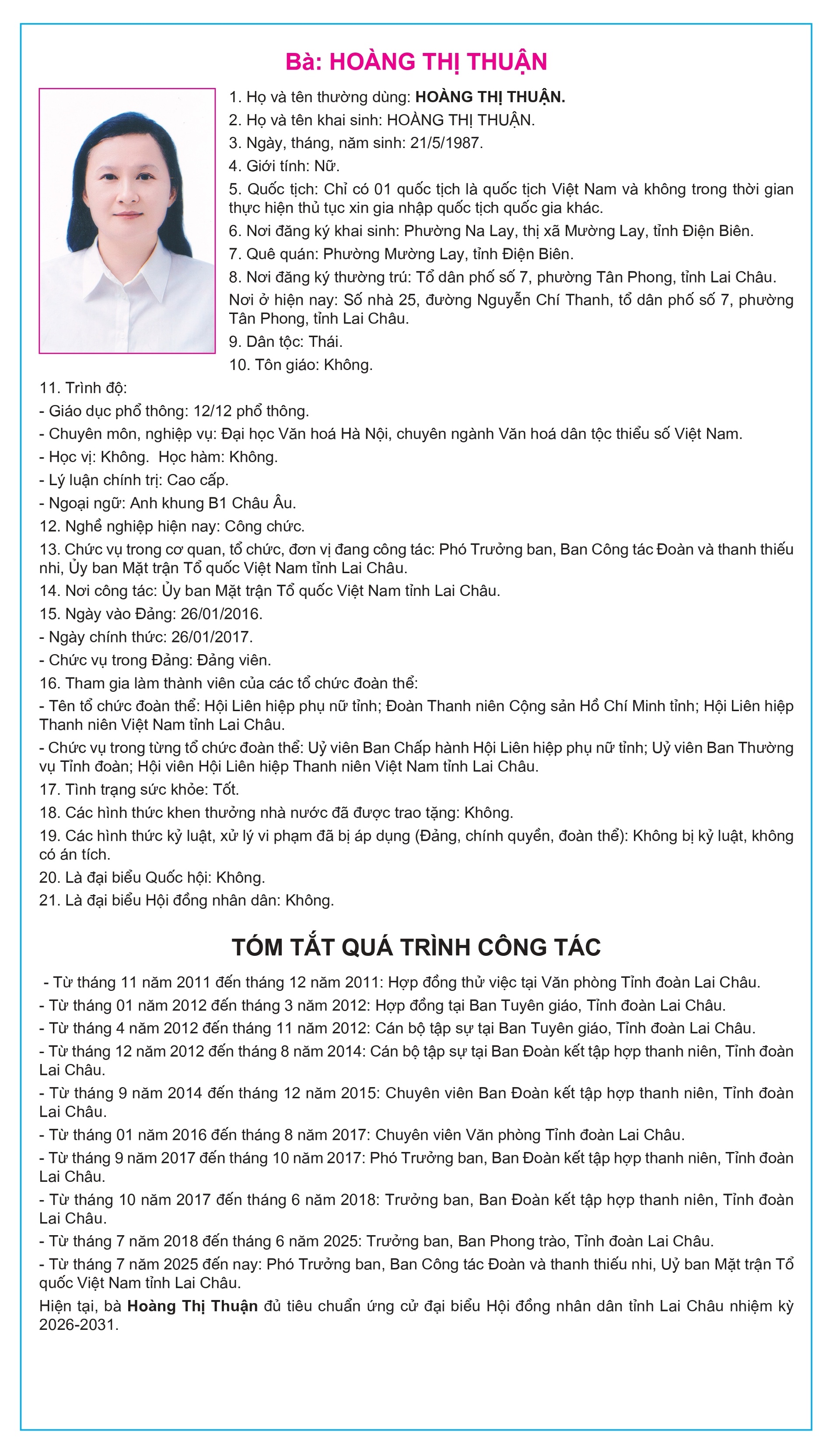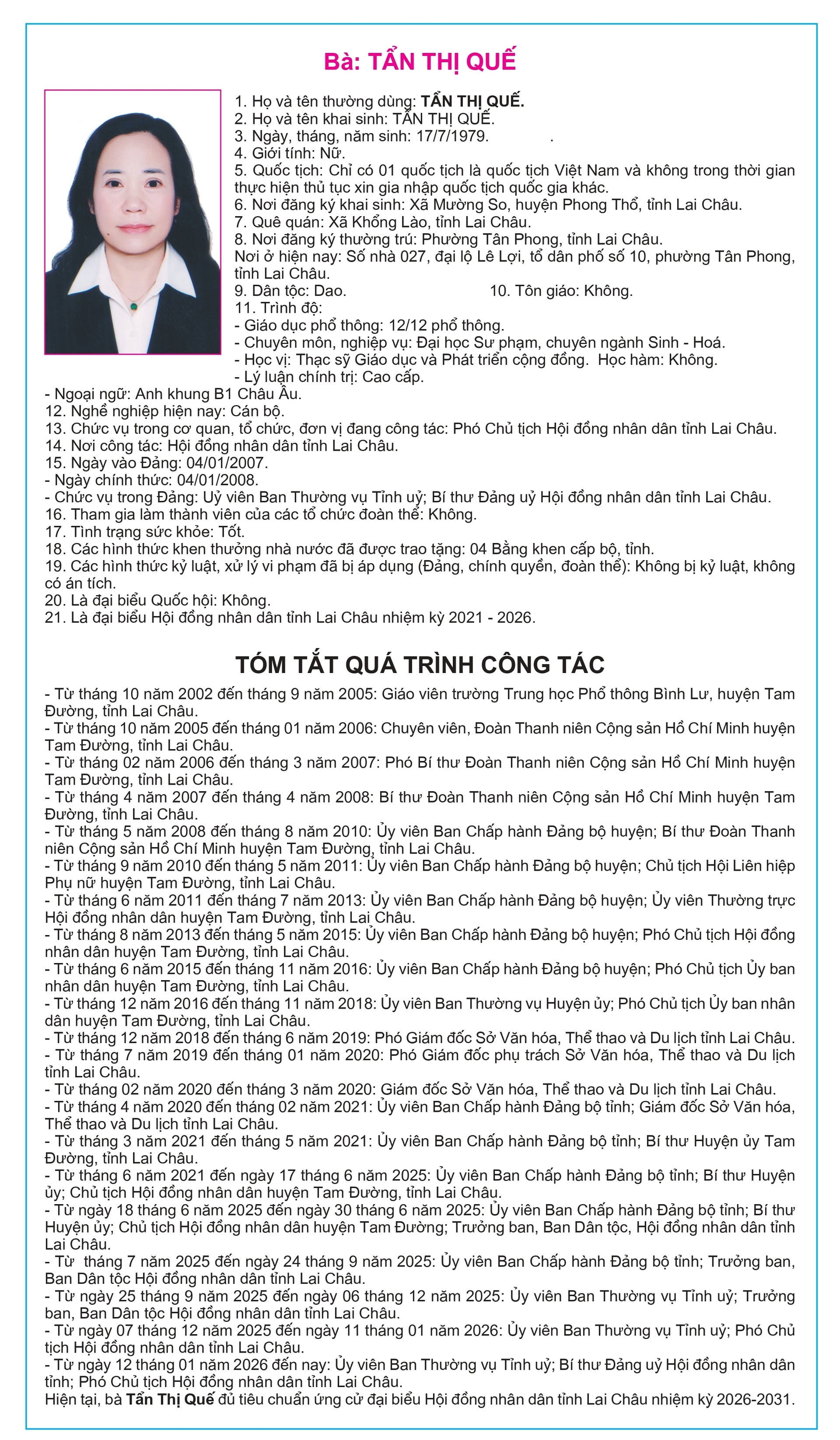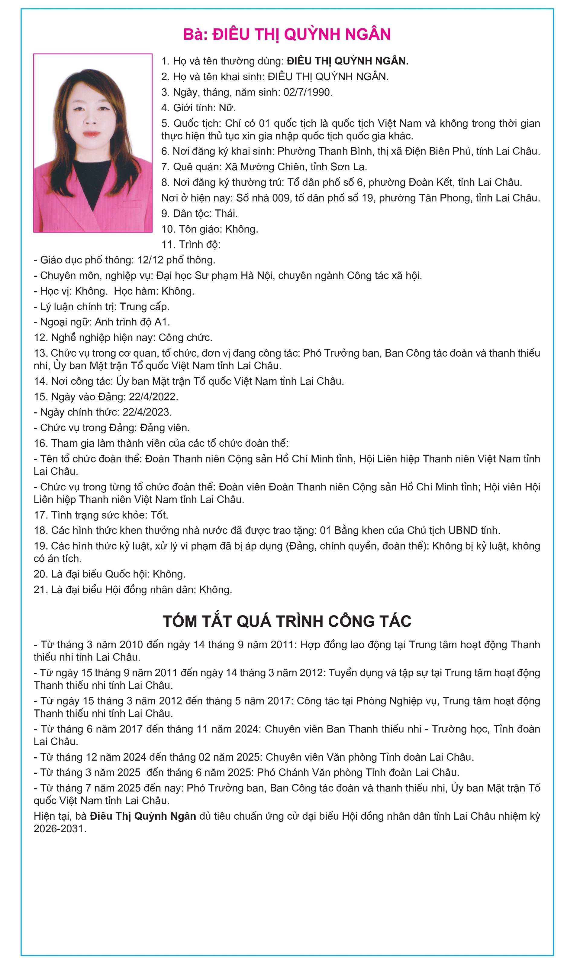 Tiểu sử tóm tắt của người ứng cử Đại biểu Hội đồng Nhân dân tỉnh Lai Châu, nhiệm kỳ 2026-2031