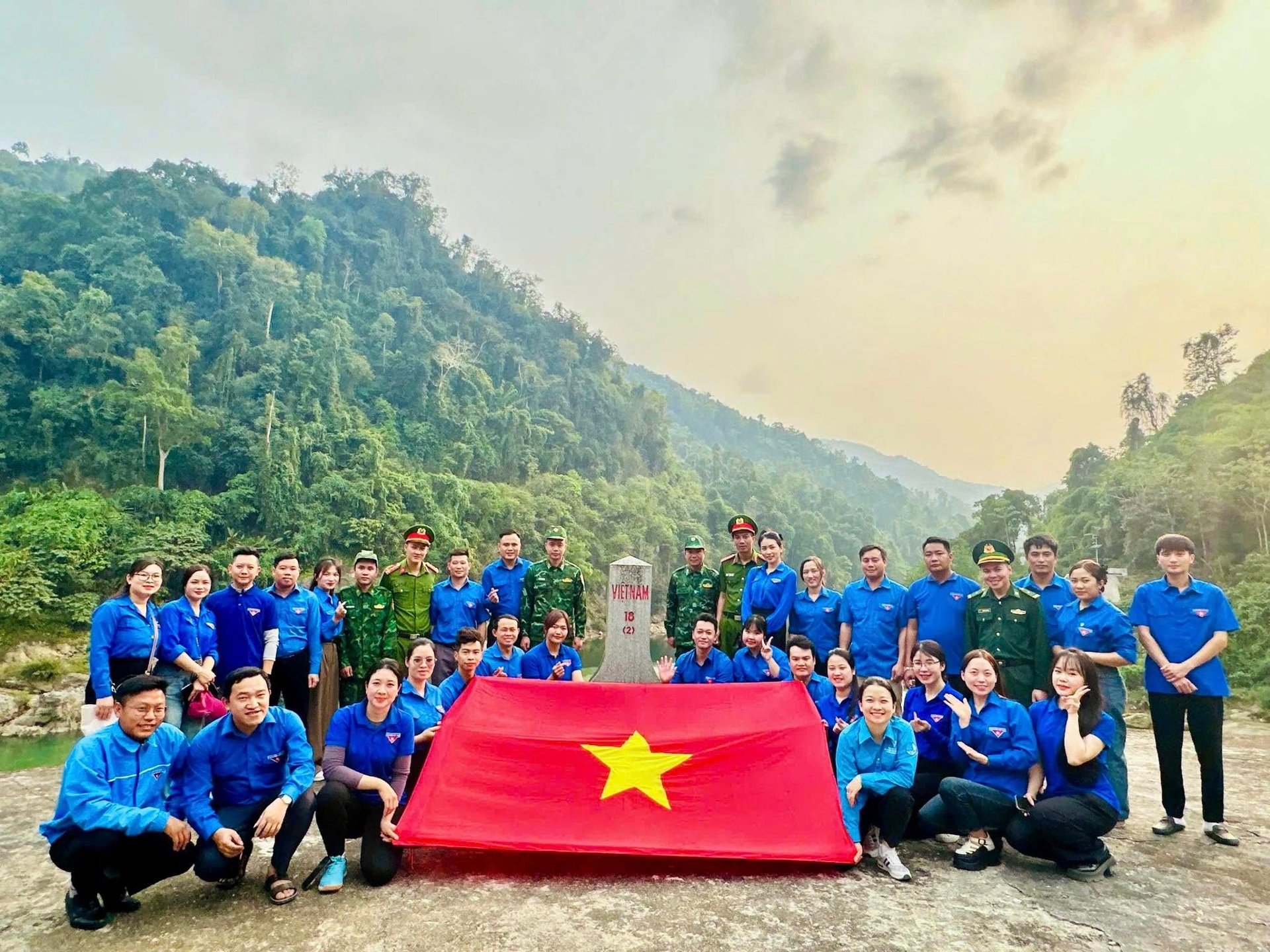 Đoàn Trường THPT chuyên Lê Quý Đôn phối hợp với các cán bộ, chiến sĩ Đồn Biên phòng Ka Lăng tham quan, trải nghiệm tại cột mốc 18(2) ở Kẻng Mỏ (xã Thu Lũm) trong Chương trình "Tháng ba biên giới".