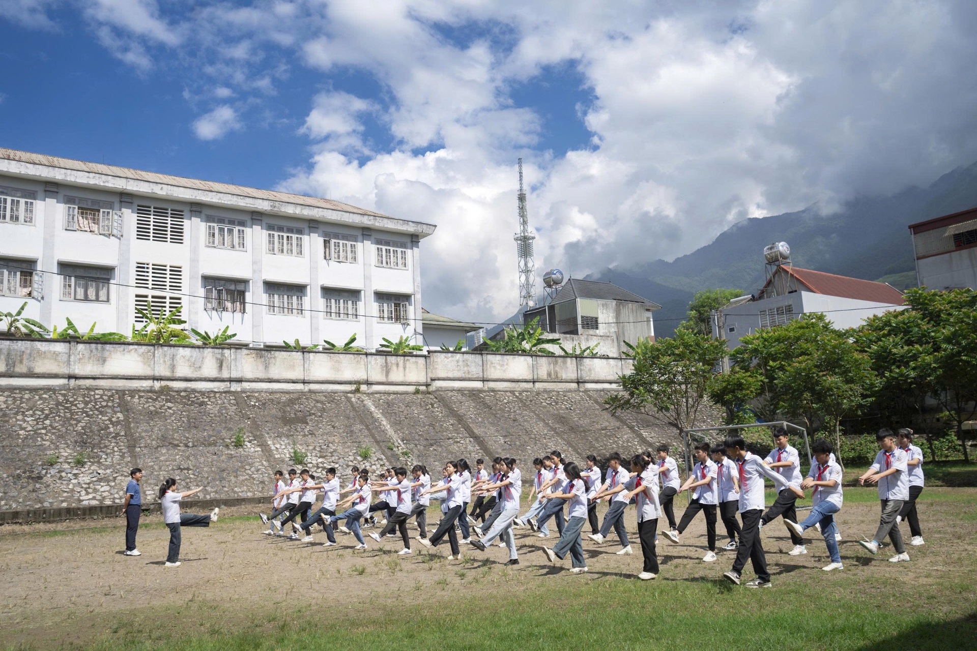 Học sinh lớp 8A2 (Trường THCS Tam Đường) trong giờ thể dục.