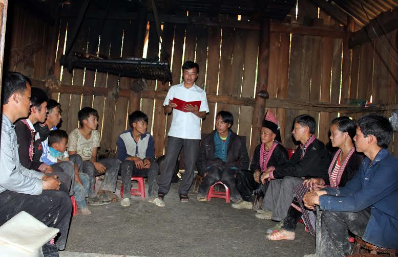 Bí thư Chi bộ Giàng A Sính tuyên truyền, vận động bà con phát triển kinh tế.