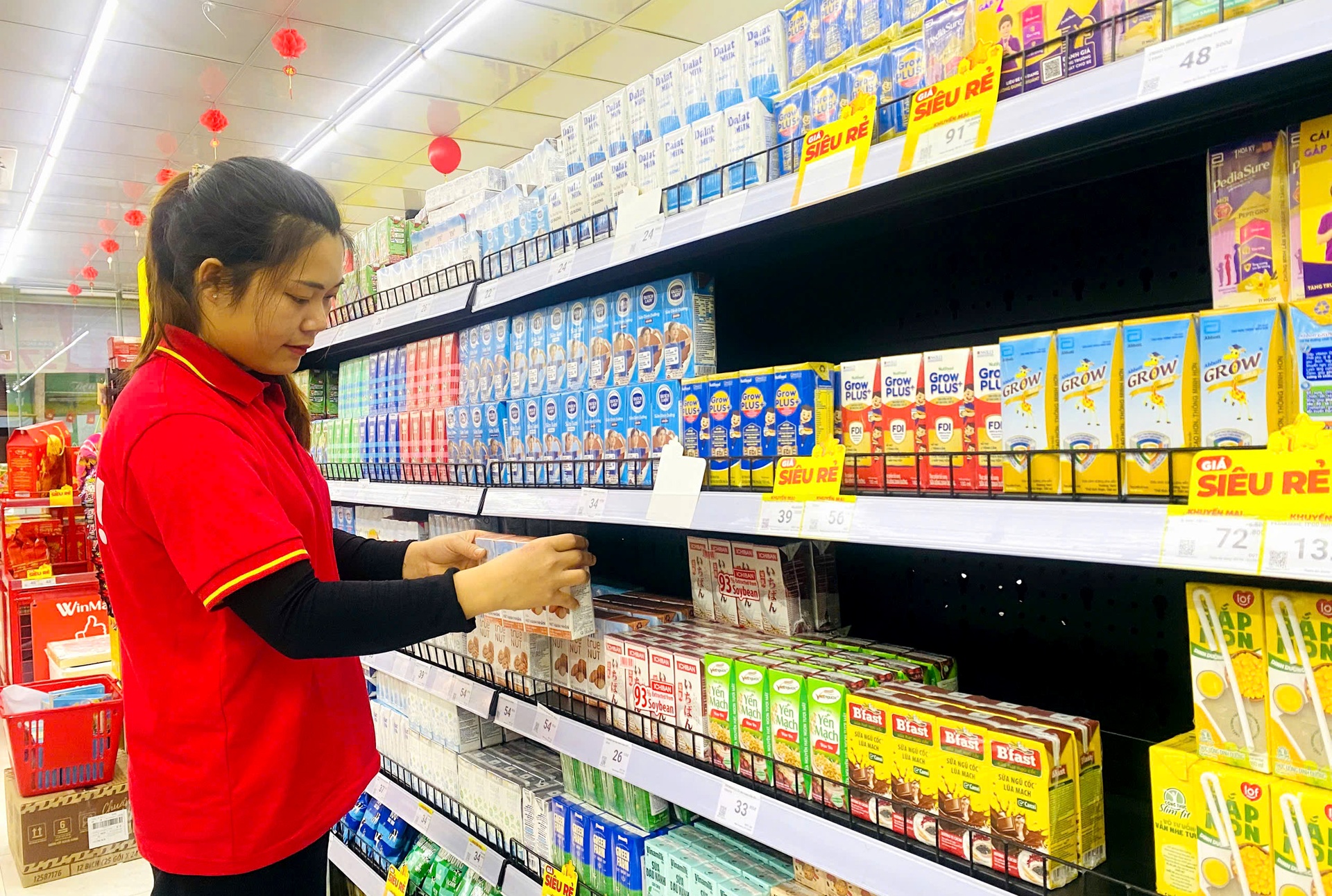 Các siêu thị trên địa bàn tỉnh bày bán sữa và thực phẩm thiết yếu với nguồn hàng phong phú, giá cả được niêm yết công khai, rõ ràng, phục vụ nhu cầu mua sắm của người dân dịp giáp Tết.