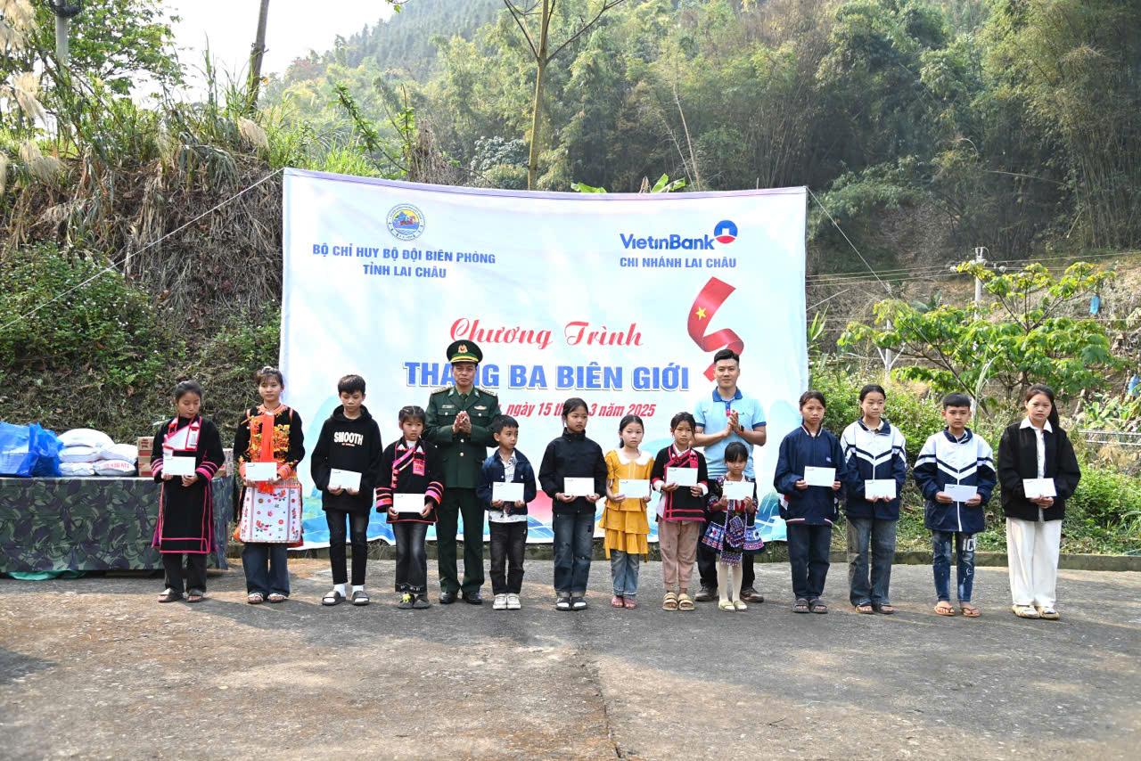 Nối tiếp kết quả đó, Chương trình “Tháng ba biên giới” năm nay được triển khai tập trung vào các hoạt động: tặng quà cho học sinh, nhân dân có hoàn cảnh khó khăn; dọn vệ sinh, bảo vệ môi trường. Tại Chương trình, lãnh đạo Bộ Chỉ huy BĐBP tỉnh, VietinBank Lai Châu đã trao tặng 500 áo ấm, 500 đôi tất cho học sinh Trường Mầm non xã Huổi Luông; trao tặng 30 suất quà cho 30 hộ nghèo và 15 suất quà cho học sinh có hoàn cảnh khó khăn với tổng trị giá 120 triệu đồng.