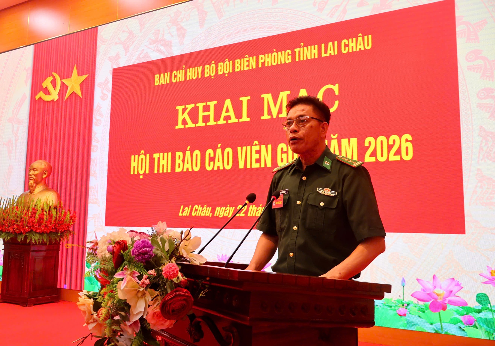 Phát biểu khai mạc hội thi, Đại tá Lê Công Thành - Phó Chính uỷ BĐBP tỉnh nhấn mạnh, hội thi nhằm đánh giá đúng chất lượng đội ngũ báo cáo viên, tuyên truyền viên. Đây là dịp để các đồng chí cán bộ đảm nhiệm và phụ trách báo cáo viên trao đổi, học tập kinh nghiệm, không ngừng nâng cao trình độ, năng lực. Đồng thời, giúp cấp uỷ, chỉ huy, các cơ quan, đơn vị nắm chắc thực trạng đội ngũ cán bộ đảm nhiệm, phụ trách báo cáo viên, tuyên truyền viên; có kế hoạch, bồi dưỡng, xây dựng, nâng cao chất lượng đội ngũ báo cáo viên, tuyên truyền viên, đáp ứng yêu cầu nhiệm vụ và nhu cầu thông tin ở đơn vị hiện nay. Thông qua hội thi, Ban Chỉ huy BĐBP tỉnh lựa chọn các đồng chí báo cáo viên xuất sắc, tiếp tục bồi dưỡng tham gia thi báo cáo viên cấp Bộ Tư lệnh BĐBP năm 2026.