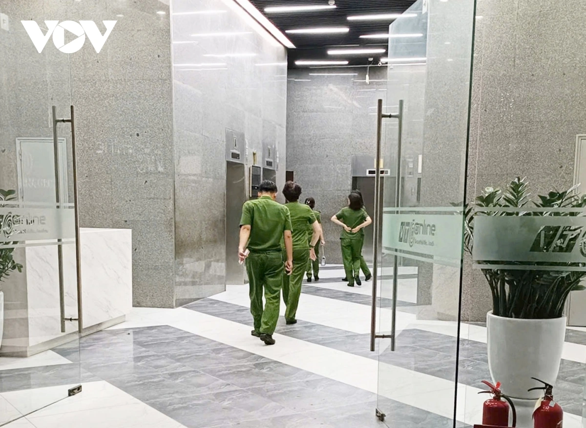 Lực lượng chức năng làm việc đến khoảng 3h sáng 7/10. Nhiều người được cho là nhân viên công ty cũng xuất hiện. Đến rạng sáng 7/10, cơ quan công an rời khỏi tòa nhà cùng một số người. Trong đó, có một người đàn ông mặc áo tối màu, đội mũ được dẫn đi.