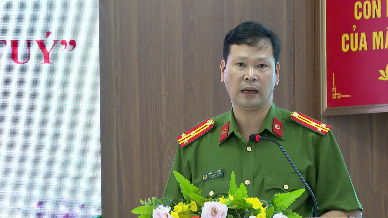 Thượng tá Trần Ngọc Toản – Phó Trưởng Phòng Cảnh sát Điều tra tội phạm về ma tuý (Công an tỉnh) phát biểu tại hội nghị.