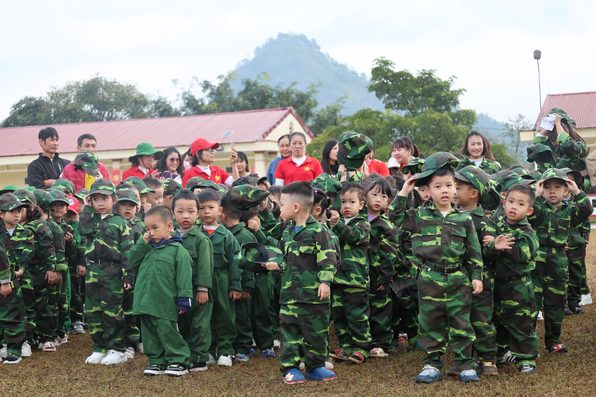 Tham dự chương trình có đại diện lãnh đạo, cán bộ, chiến sĩ Trung đoàn 880; lãnh đạo, cán bộ, giáo viên, các bậc phụ huynh và 420 em học sinh Trường Mầm non Hoa Ban - Bình Minh - Nậm Loỏng.