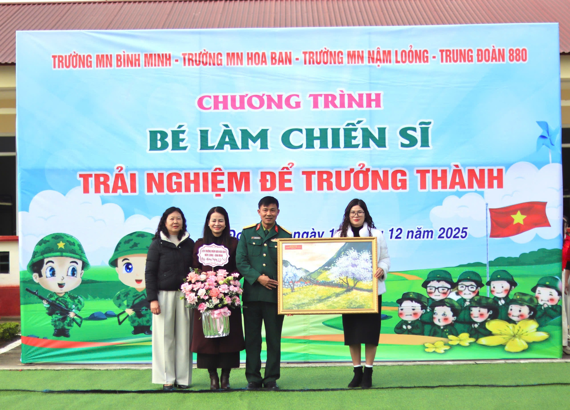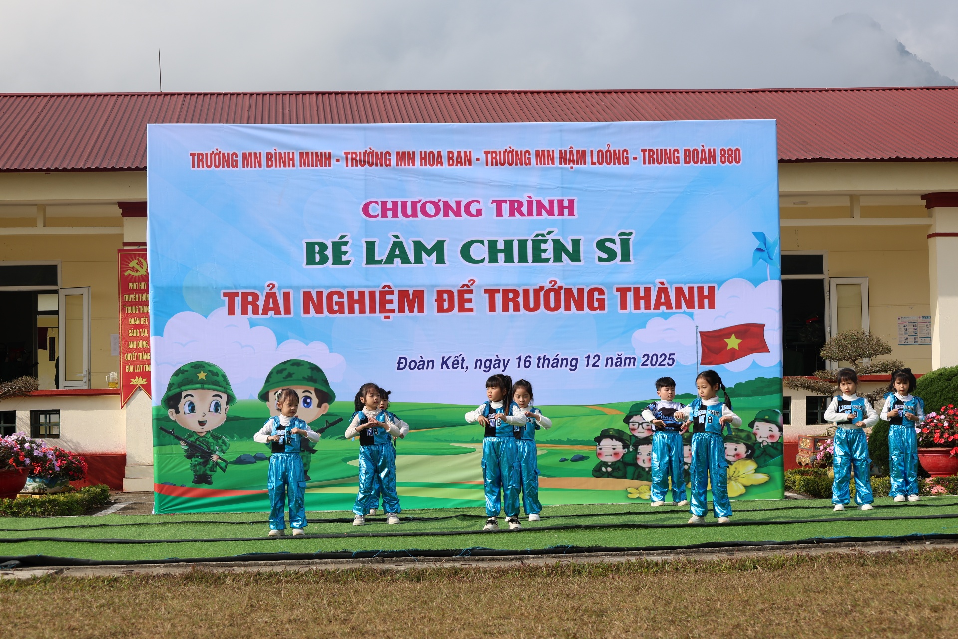 Sáng 16/12, tại Trung đoàn 880, liên Trường Mầm non Hoa Ban - Bình Minh - Nậm Loỏng phối hợp với Trung đoàn 880 (Bộ Chỉ huy Quân sự tỉnh), tổ chức Chương trình Bé làm chiến sĩ trải nghiệm để trưởng thành. Đây là hoạt động hướng tới chào mừng 81 năm Ngày thành lập Quân đội Nhân dân Việt Nam (22/12/1944 - 22/12/2025).