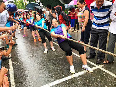 Trận thi đấu kéo co nội dung đồng đội nữ tại Đại hội Thể dục thể thao phường Tân Phong lần thứ III.