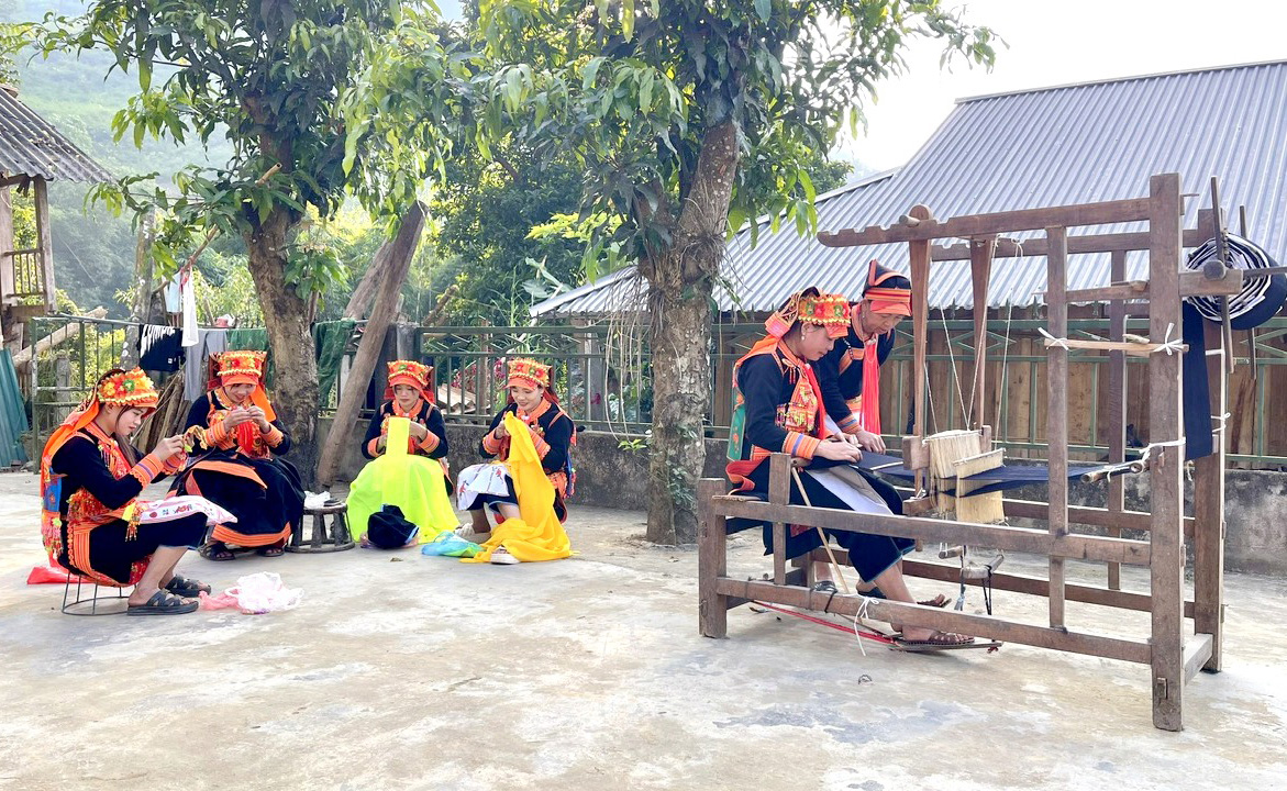 Phụ nữ bản Sàng Giang giữ gìn nghề thêu, dệt trang phục truyền thống dân tộc góp phần giữ gìn bản sắc văn hóa.