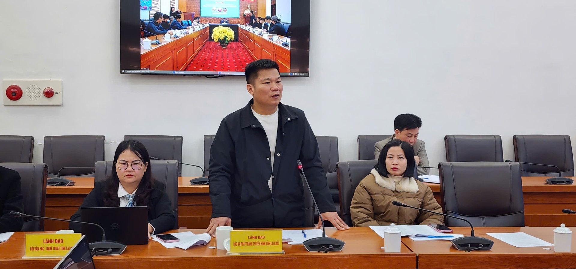 Lãnh đạo Báo và phát thanh, truyền hình Lai Châu phát biểu ý kiến tại buổi họp báo.