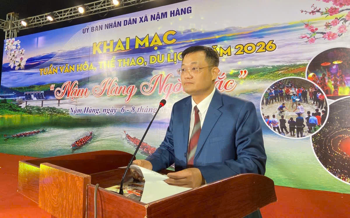 Phát biểu khai mạc, đồng chí Quách Tất Hưởng - Phó Bí thư Đảng uỷ, Chủ tịch UBND xã Nậm Hàng nhấn mạnh: Tuần Văn hóa, Thể thao, Du lịch xã Nậm Hàng năm 2026 là sự kiện văn hóa quan trọng khởi đầu năm mới, là dịp để đẩy mạnh truyền thông, giới thiệu, quảng bá các giá trị văn hóa tốt đẹp của Nhân dân các dân tộc tỉnh Lai Châu nói chung và xã Nậm Hàng nói riêng, đến với du khách trong và ngoài tỉnh, hướng đến xây dựng sản phẩm văn hoá - du lịch mang màu sắc đặc trưng riêng, xây dựng thương hiệu Văn hoá - Du lịch Lai Châu.