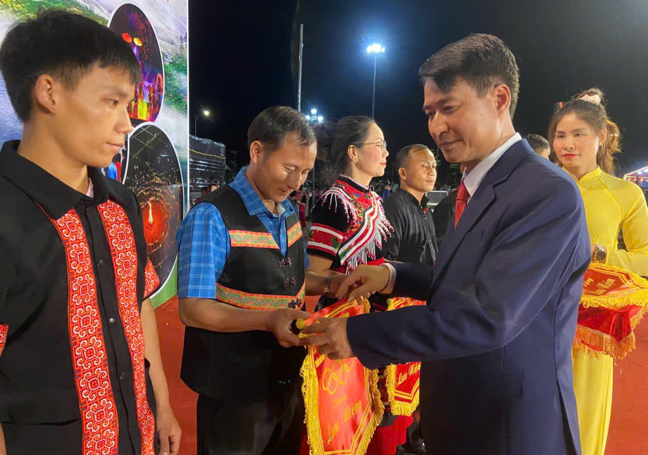 Nhân dịp này, Ban Tổ chức đã trao biểu trưng tri ân tới các nhà tài trợ đã đồng hành cùng chương trình; cờ lưu niệm cho 35 đoàn tham gia lễ hội, gồm đại diện các bản, doanh nghiệp, trường học và câu lạc bộ trên địa bàn xã.