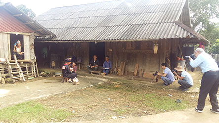 Văn nghệ sỹ tác nghiệp tại xã Pú Đao (huyện Nậm Nhùn).