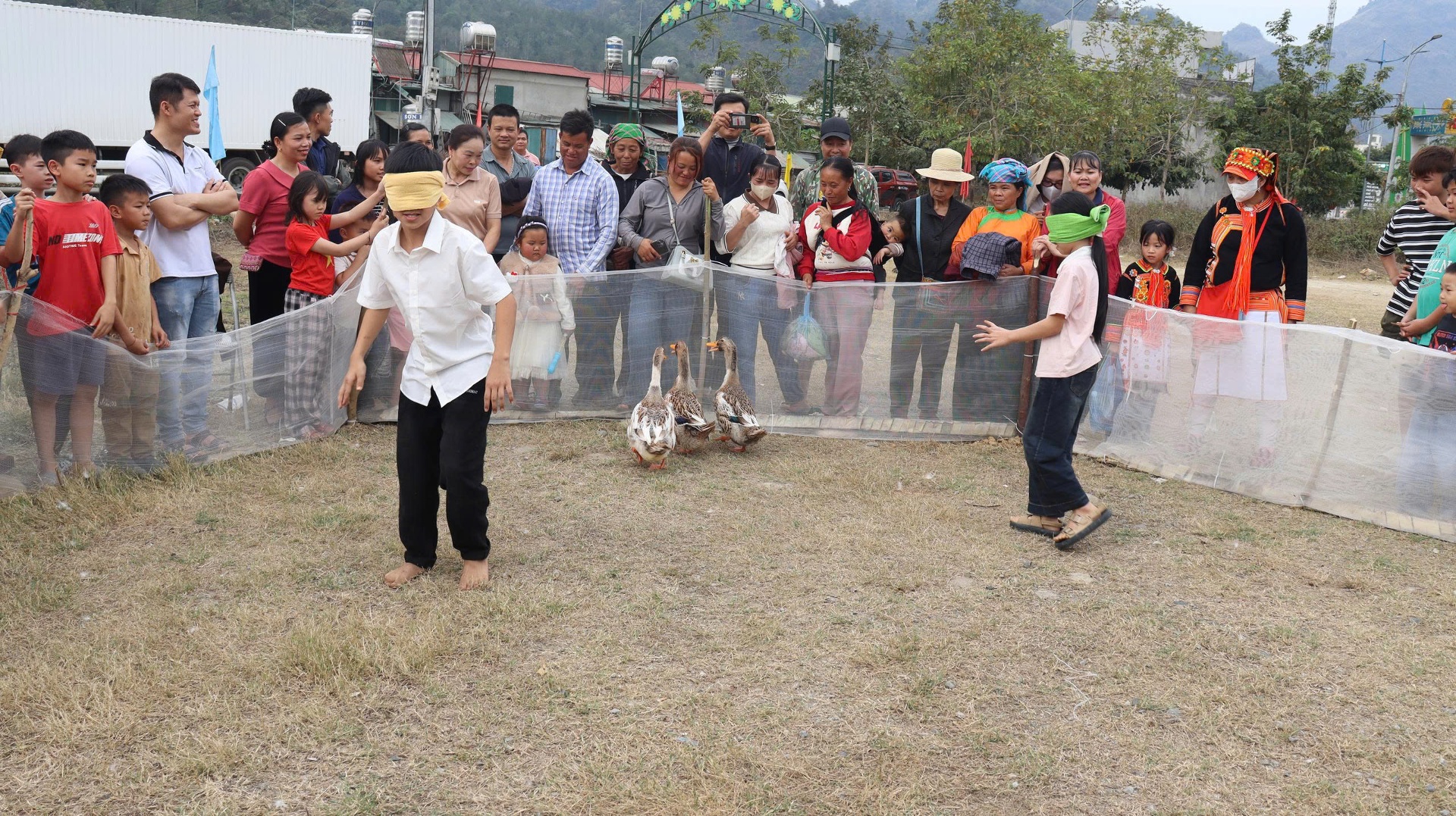Nhân dân và du khách tham gia trò chơi Bịt mắt bắt vịt.