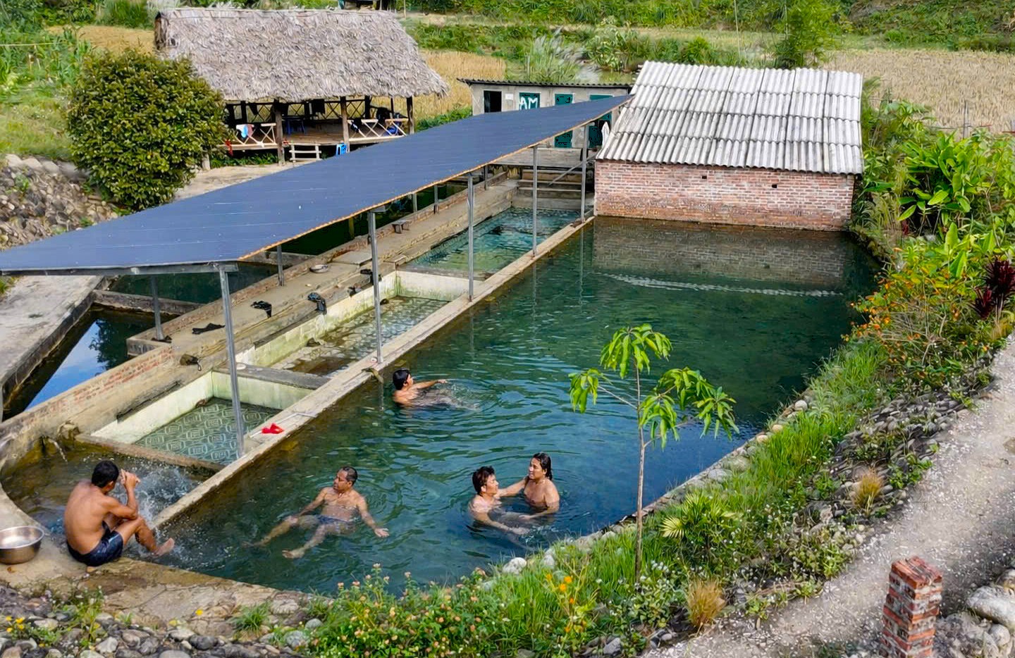 Người dân trải nghiệm tại suối nước nóng Nà Ún xã Pắc Ta.
