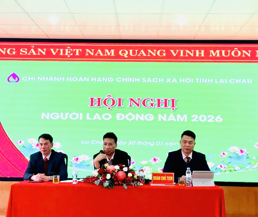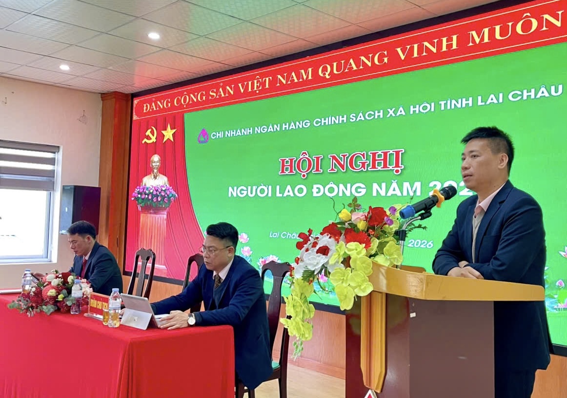 Ngân hàng Chính sách xã hội (NHCSXH) Chi nhánh tỉnh Lai Châu vừa tổ chức Hội nghị Người lao động năm 2026 nhằm đánh giá kết quả thực hiện nhiệm vụ chính trị năm 2025, đề ra phương hướng nhiệm vụ năm 2026; đồng thời phát huy dân chủ cơ sở, chăm lo quyền lợi hợp pháp, chính đáng của cán bộ, viên chức, người lao động trong đơn vị.