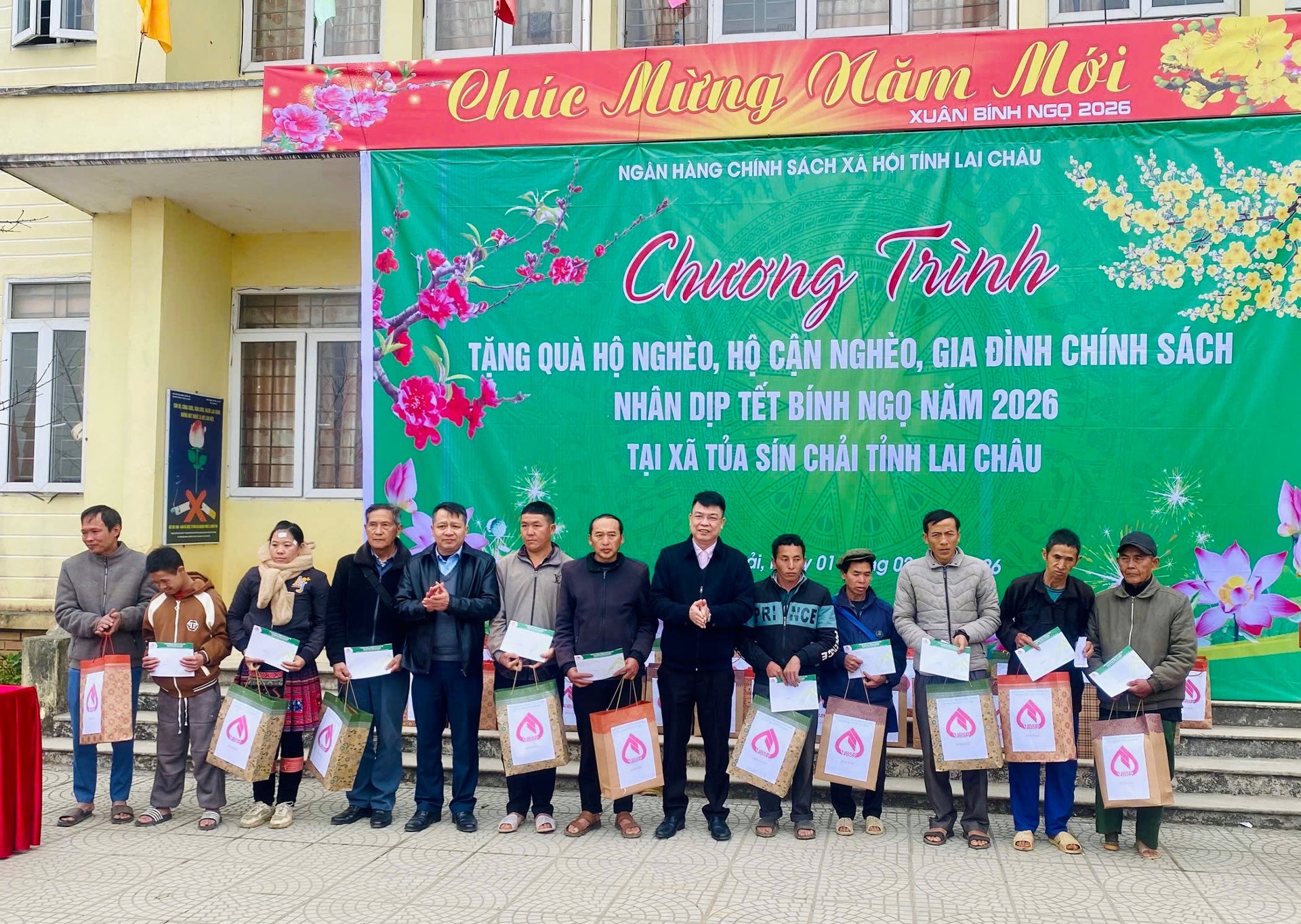 Nhân dịp Tết Bính Ngọ năm 2026, Chi nhánh NHCSXH tỉnh Lai Châu đã tổ chức trao tặng 530 suất quà cho hộ nghèo, hộ cận nghèo và gia đình chính sách tại 14 xã, phường trên địa bàn toàn tỉnh, với tổng kinh phí 371 triệu đồng. Đây là nguồn kinh phí do tập thể cán bộ, viên chức và người lao động trong toàn hệ thống đóng góp.